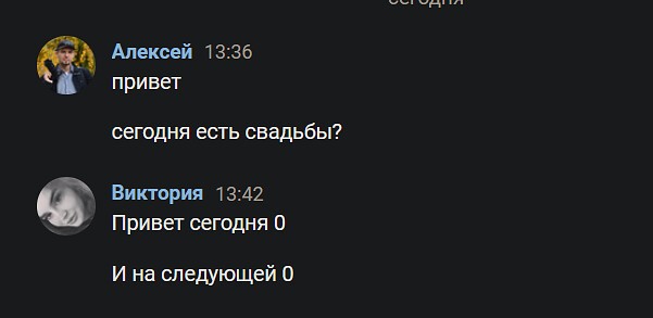 Хм… странно как то. У всех корешей есть… Дат свободных нет до ноября. Агенства по 60-70 свадеб в сезон пилят.