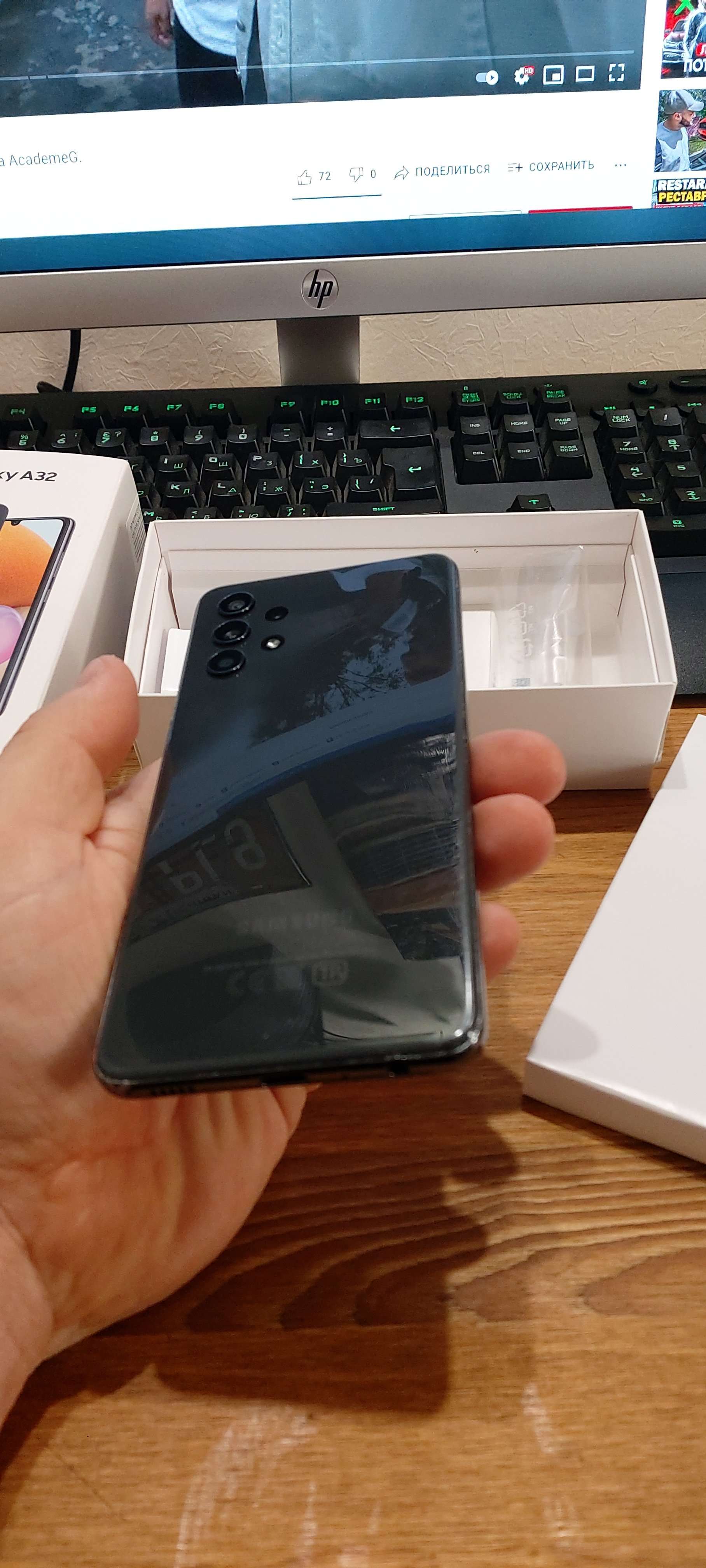 Samsung a32 64 гб в чёрном цвете. Комплект полный. По работоспособности нареканий нет, все отлично. Батарея менялась где-то месяц назад. Дисплей в идеале, задняя крышка имеет следы использования, но её не менял принципиально, так как оригинал лучше, даже если с царапинами)) Очень понравилась камера, фотографии делает действительно неплохие. Очень приятный дисплей, амолед все таки неплохая штука. Можно рассмотреть обмен) Для форума 11000