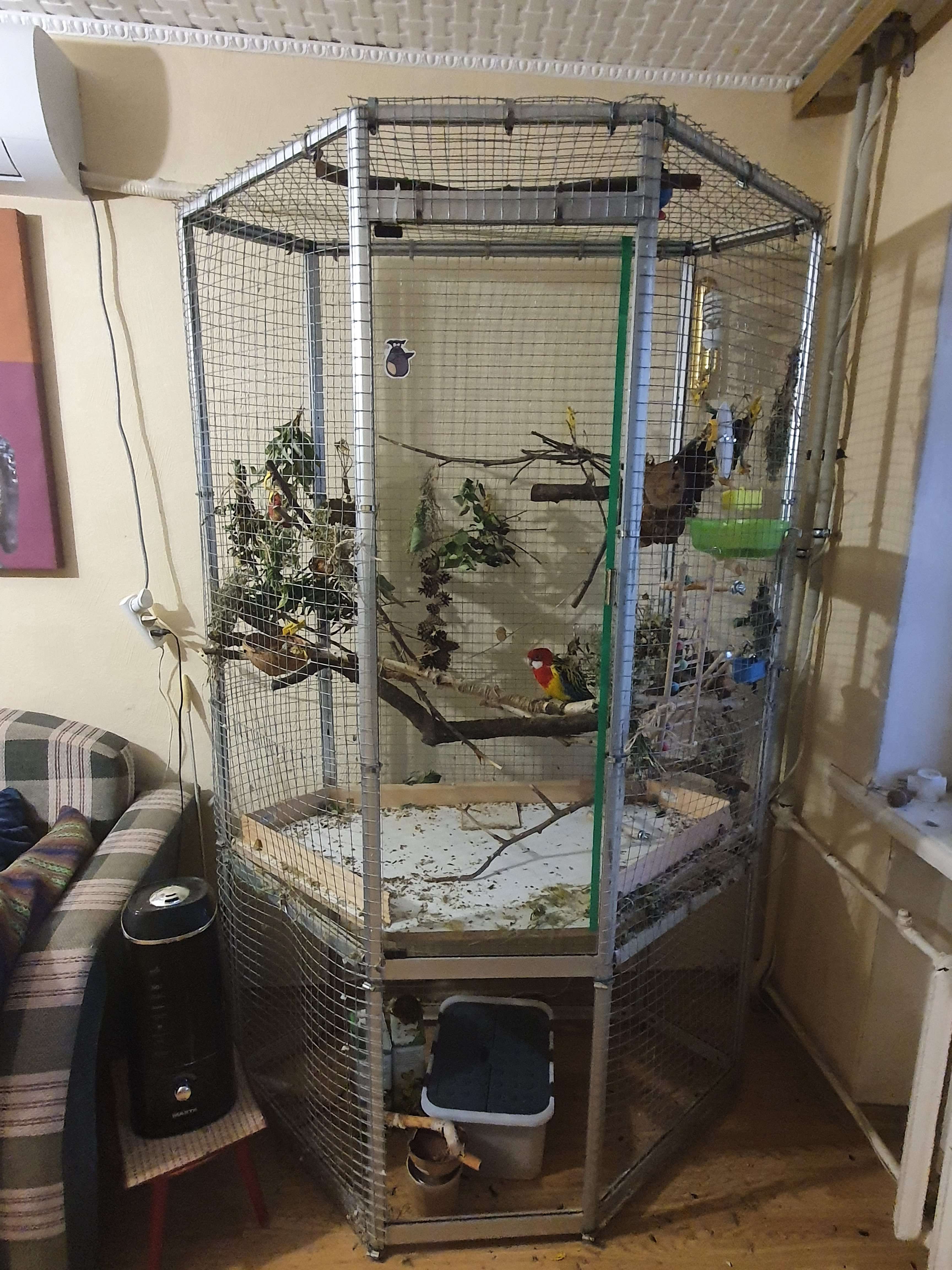 @ANIMAX, да это уже нам некомфортно с ним стало, уборка не очень удобная - поддона как такового нет, да и постоянно пол вокруг вольера засыпан семечками и шелухой - бортиков по периметру нет, только внутренние, большая часть остается внутри, но не все. Ну это и временное решение все-таки было, а тут появилась возможность поменять. Могу вам подсказать телефон мастера, который делает вольеры и клетки по пожеланиям клиента, нам обошлось в 10700. Очень дешево за подобное качество, особенно на фоне ценников за такие же в Москве.