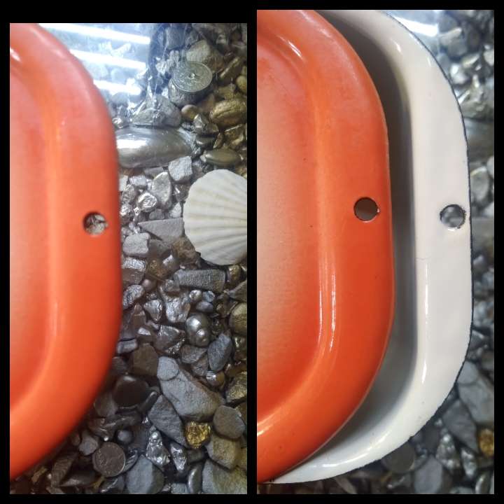 Да, вот так живёшь и думаешь всё знаешь, а тут на тебе, загадка ... Ну насчёт тех.отверстия сомневаюсь. Для крышки ладно, она почти плоская. Окунули в ванную, подвесили на крючёк и она дальше по ленте пошла, обтекать. А вот с самим контейнером так не получится, эмаль неизменно сольётся вниз и там будет утолщение. Неподходит. Вариант с замком от соседей, просто несерьёзен