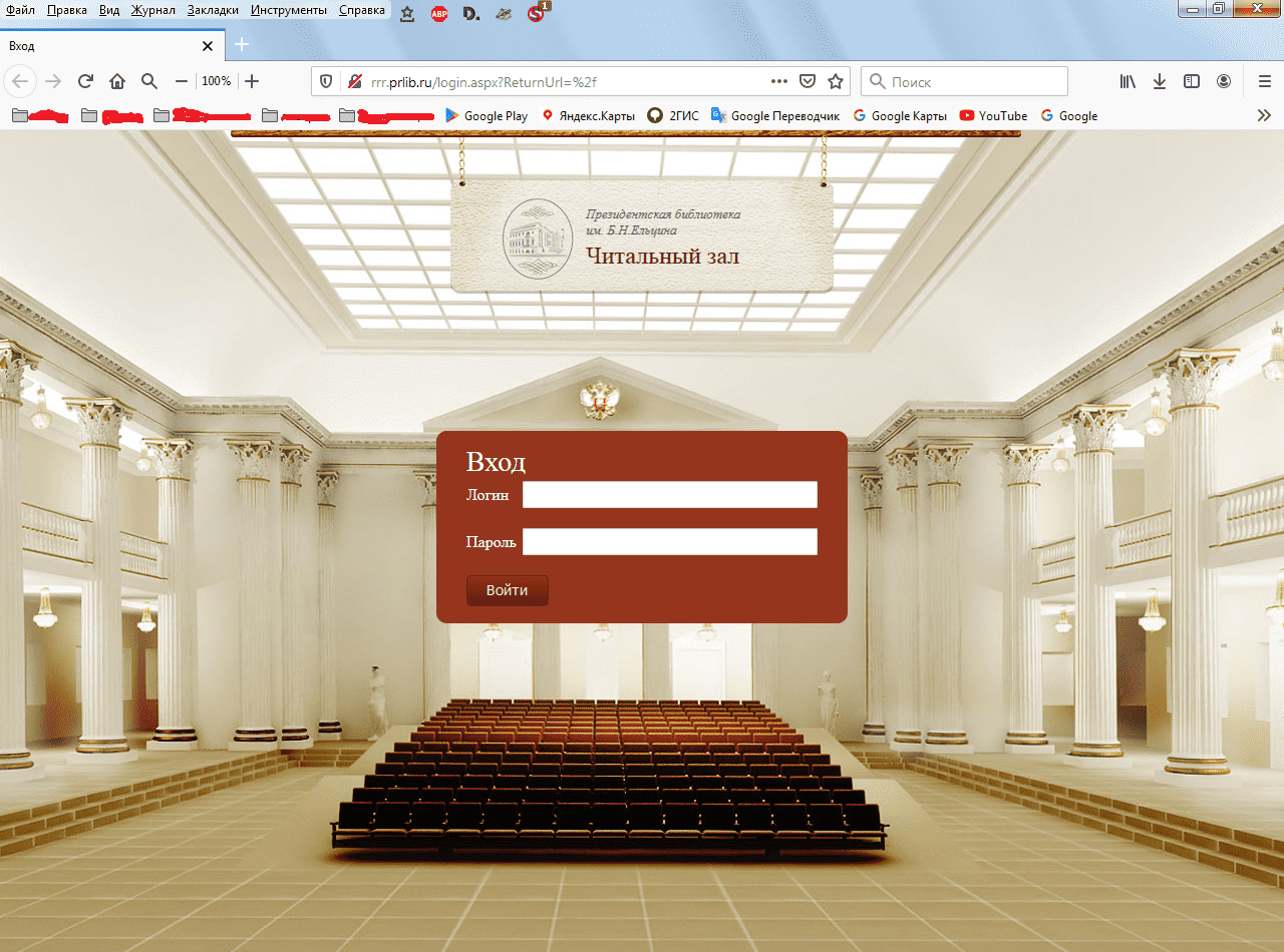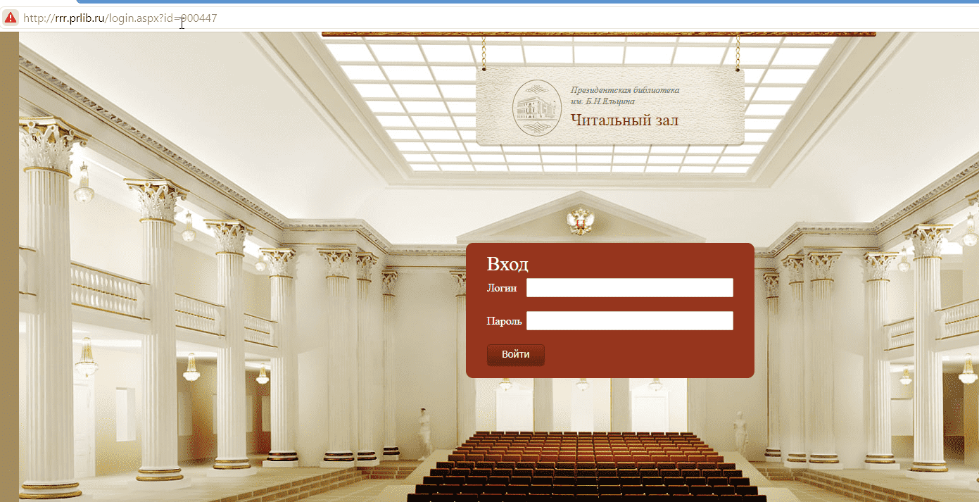 В инструментах разработчика, вкладка Сеть, правым кликом заблокировать скрипт http://rrr.prlib.ru/scripts/login/LoginPageUi.js