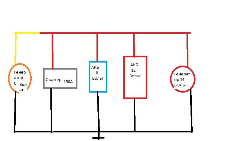Ага. У тебя. Во-первых акб разрядить в 0, просто не реально. Все потребители тупо отключатся. Во-вторых у акб есть внутреннее сопротивление. И отключенный из цепи акб не равен разряженному. А если он посыпался и дал кз? По твоей логике как только акб разрядится, так он отключается из цепи. И схема у тебя кривая. Даже не считая, что ты не отключил акб донора. Подключи осциллограф и посмотри на пульсации. Так могут убить электронику, только ослы на площадках перепродажи. Которые бездумно бустеры кидают.