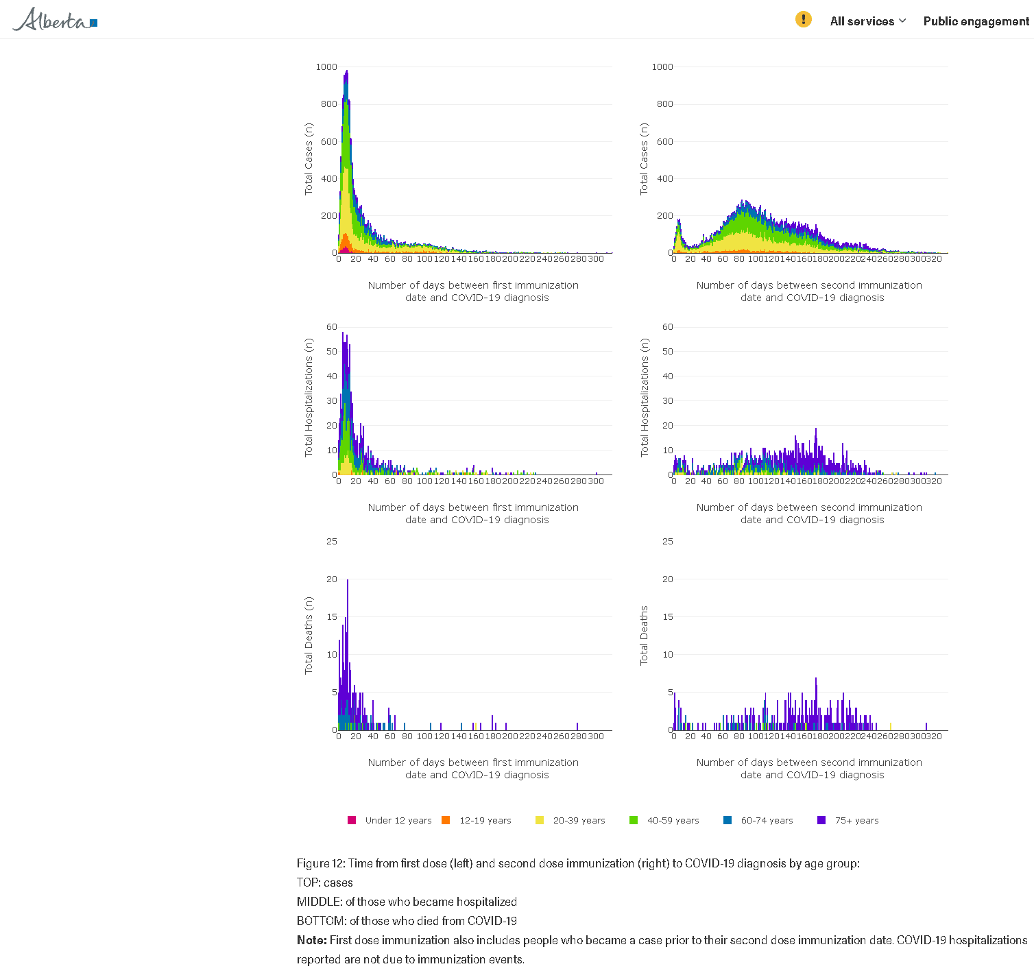 Почему вакцинированые реже болеют и умирают. Потому что они чаще болеют и умирают "между первой и второй" COVID-19 Alberta statistics