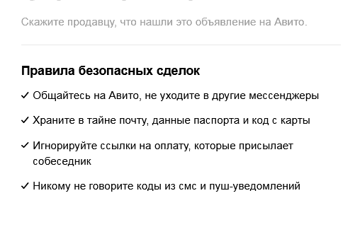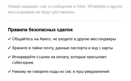 авито на это ругаеца! им очень важно находица прослойкой между покупаном и продаваном. чтобы выдумывать эффективные схемы где бы еще намошенничать себе бабла. прикрываясь заботой от других мошенников. главная цель авито-на основе сворованной личной инфы пользователей высчитывать насколько можно задирать цены на свои услуги. чтобы хомячки матюгались, но платили и всё это под прикрытием "борьбы с мошенниками" которые как были так и остануца. поэтому весь диалог должен состоять в обмене номеров. и далее уже договариваца без прослушки авито.