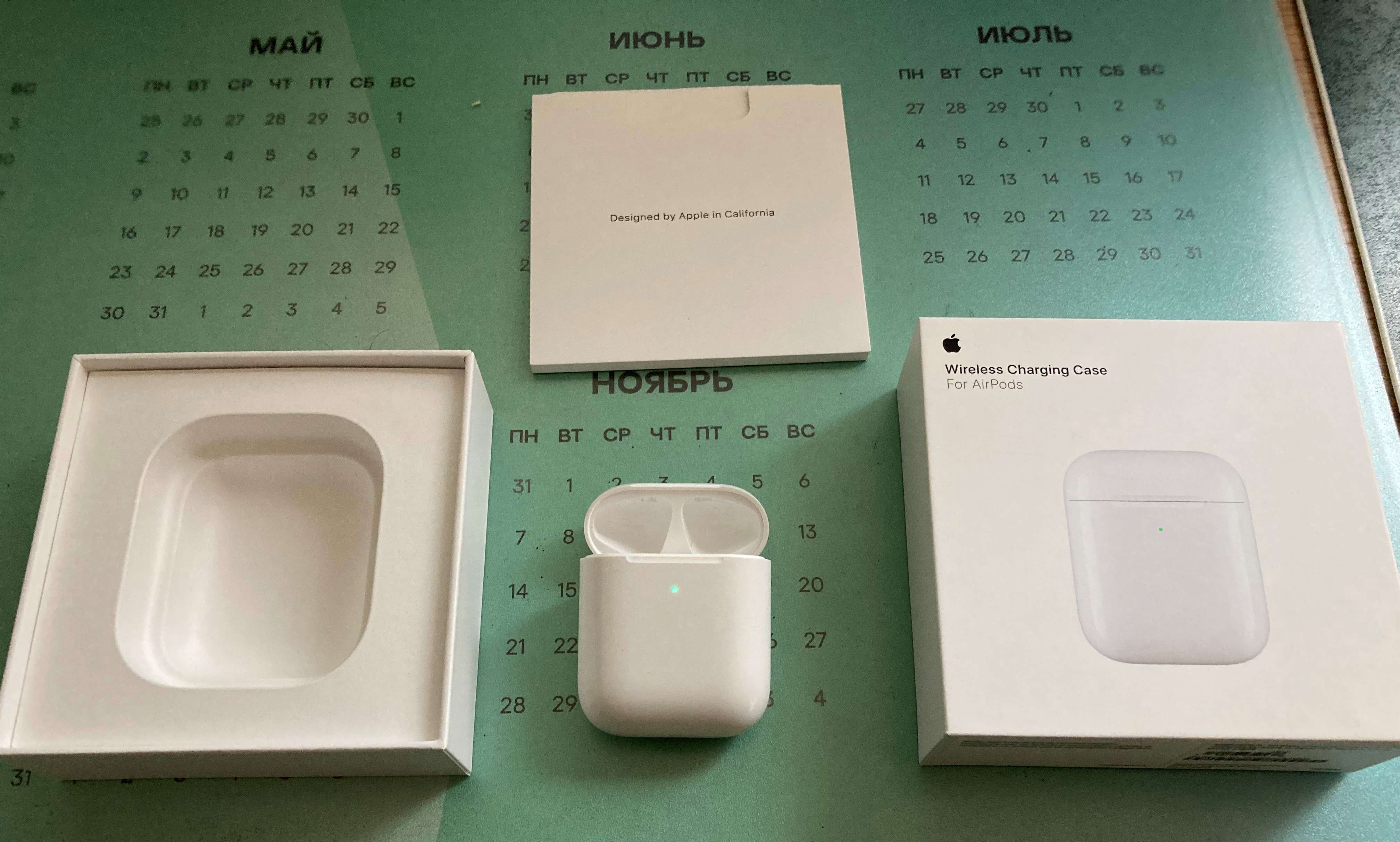 Продаю оригинальные наушники AirPods 2. Купленные в Гонконге, в Apple Store, в 2019 году, чек есть, по гарантии менялись в Германии в январе 2020. Комплект коробка, зарядный кейс и наушники. Цена 5500 руб. Продаю оригинальный зарядный кейс для Airpods2 с беспроводной зарядкой. Есть потертости. Покупался в Германии в Apple Store. Цена 3000 руб. Посмотреть вложение 301839