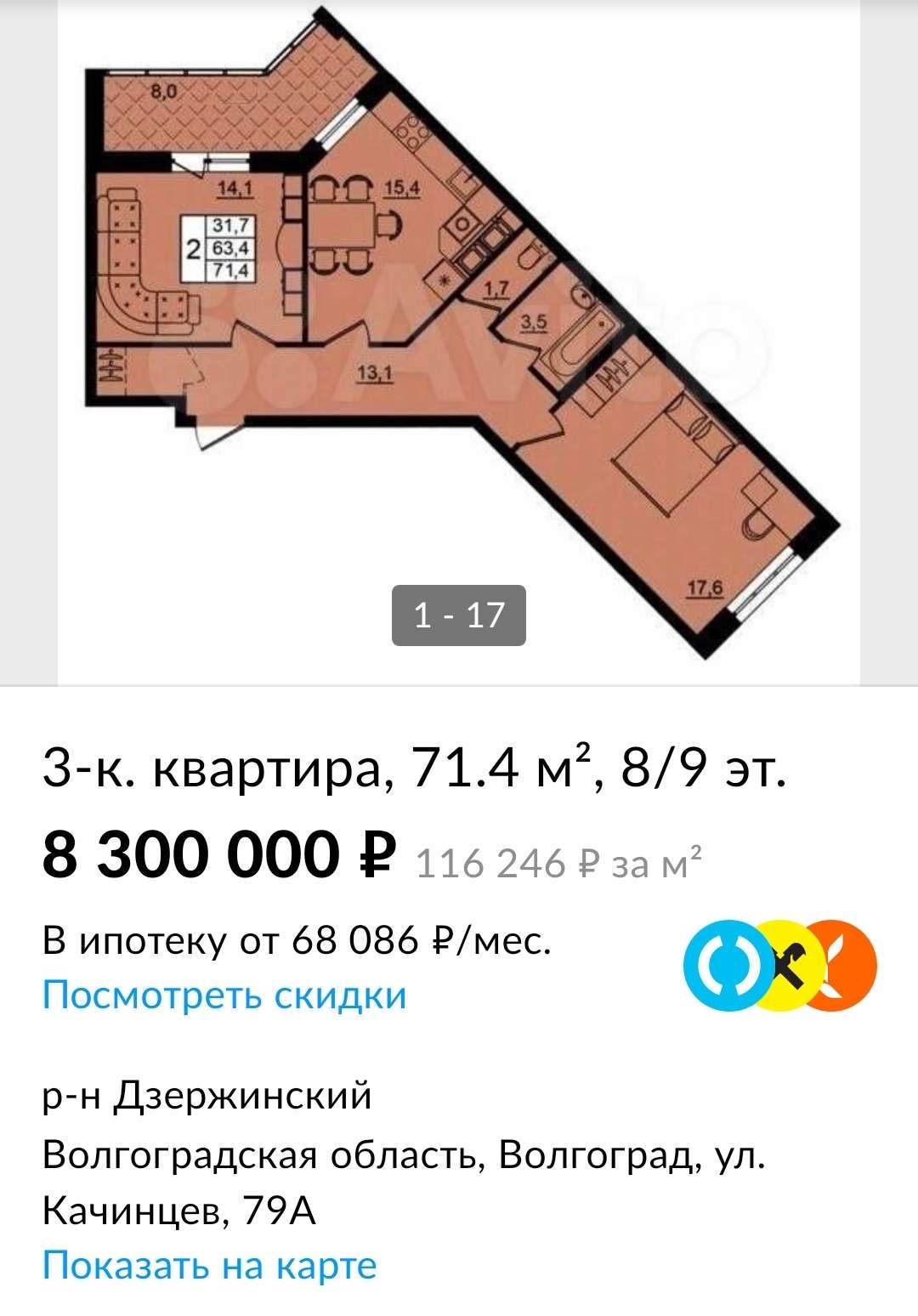 Конечно нет, я про это и не говорил. Исключительно голый бетон. Да я и сам заберу. Мне моя обошлась в 65/м2 прямо перед новым годом. Локация, правда, другая (я об этом писал уже на форуме - нелюбимая многими долина). Но виды там и окружение существенно лучше, имхо. https://www.ативо.ru/volgograd/kvar...dium=item_page_android&utm_source=soc_sharing У моих родственников ровно такая же в бетоне там осталась по стечению обстоятельств. Цена ее была, кстати, сильно ниже.(3,5 вроде)