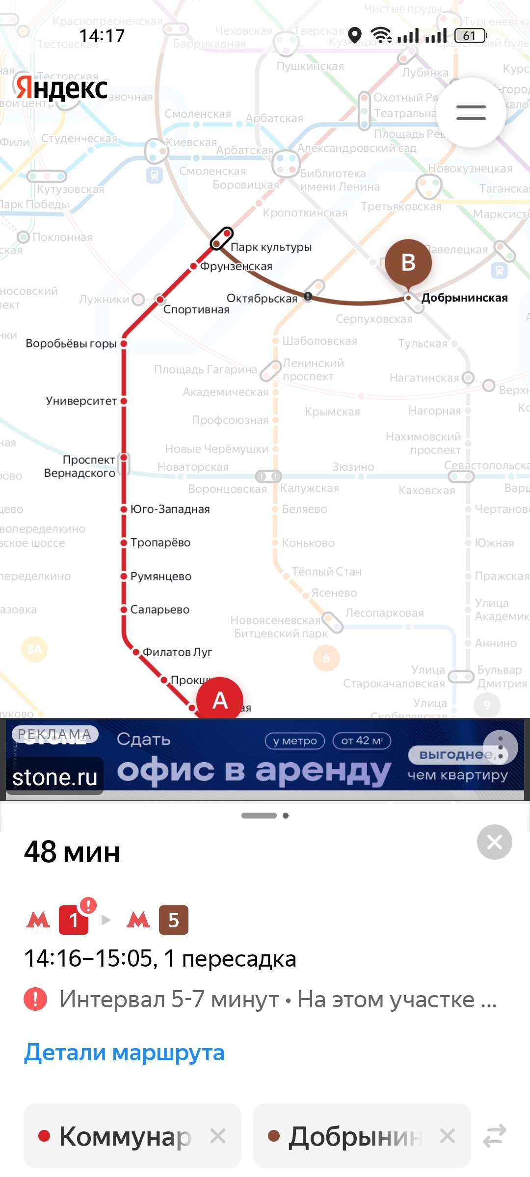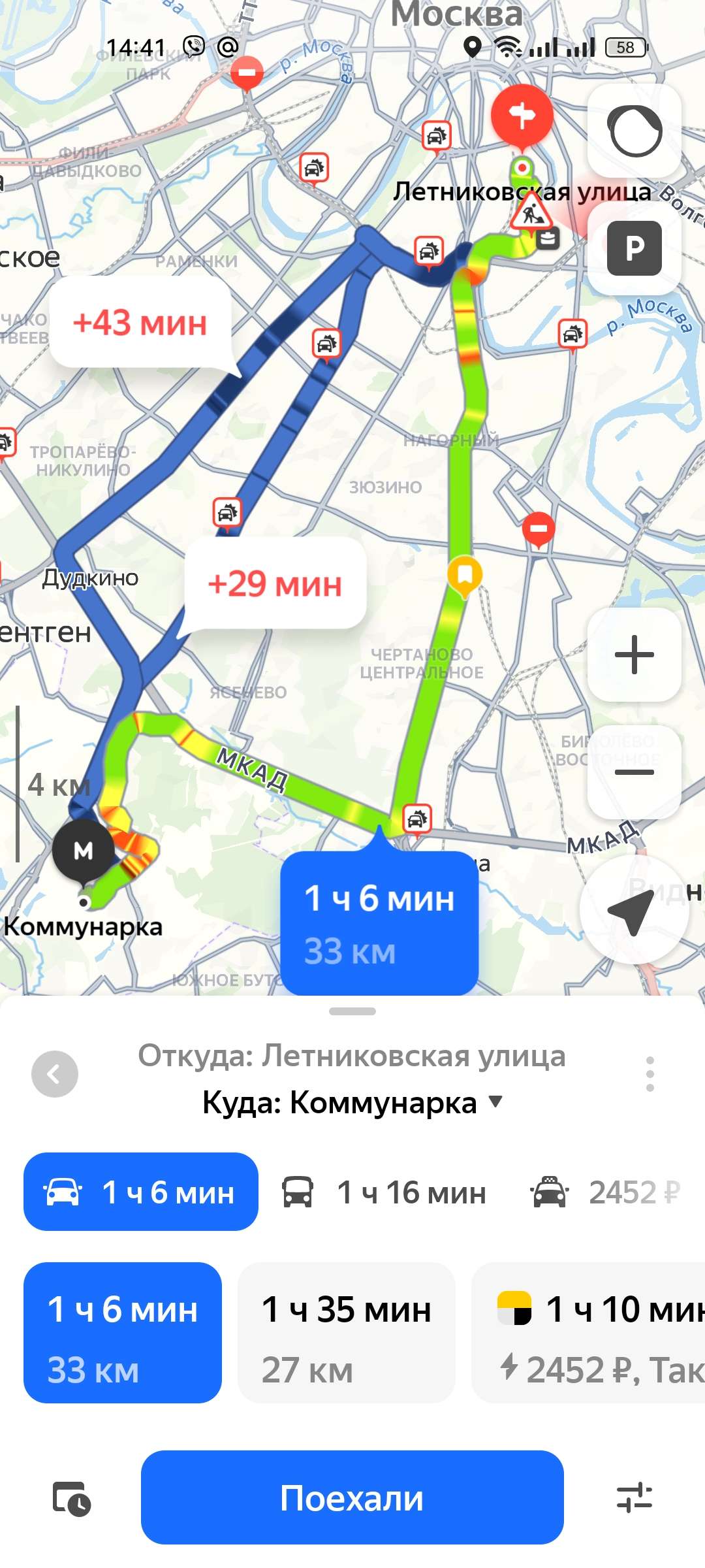 В голове у вас брехня. Вы не знаете сколько от коммунарки до работы? Условно работа на Летниковской - 20-30 минут и на работе был. А в последнее время раз в квартал на бул. Строителей в красногорск ездил час примерно (на удаленке был).