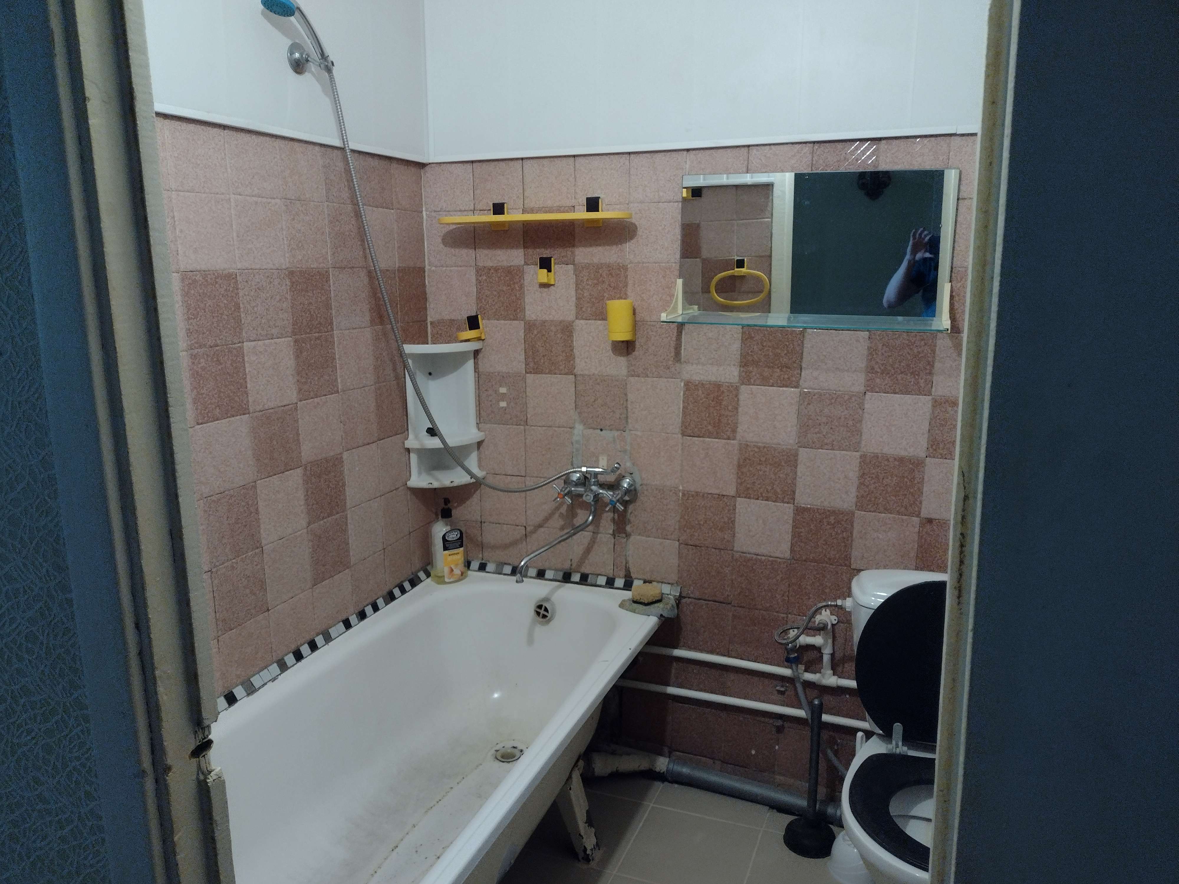 Дверь в гальюн на месте. Входная то же. В кладовую то же цела! Ракурс батенька Кафель в ванной переложил после последних арендаторов.