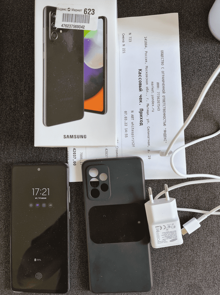 Продаю Samsung Galaxy A52 8 / 256gb Использовался всего 2 месяца. На гарантии (правда не знаю как она работает в случае покупки на Яндекс.Маркете - там написано с чеком Я.Маркета в АСЦ самсунга, не знаю, сколько самсунгов было, часть на Я.Маркете покупал, но ни разу не пользовался). Есть неглубокая царапка на задней крышке - видно на фото. Ума не приложу как так получилось - всё время был в чехле, что видно по состоянию торцов и всего остального. Кроме этой царапины всё остальное в отличном состоянии. Обратите внимание что 8/256, это заметно более быстрое устройство чем версия на 4/128. Комплект: блок зарядки, кабель, коробка, чек. Телефон ростест. От аккаунтов отвязан, сброшен к заводским. Покупался на Яндекс.Маркете 07.02.2022 за 42 тысячи (да, тогда всё было дорого, но срочно нужен был, что поделаешь))) Причина продажи - на ДР другой подарили. Цена - 25 т.р. Центр в районе цирка.