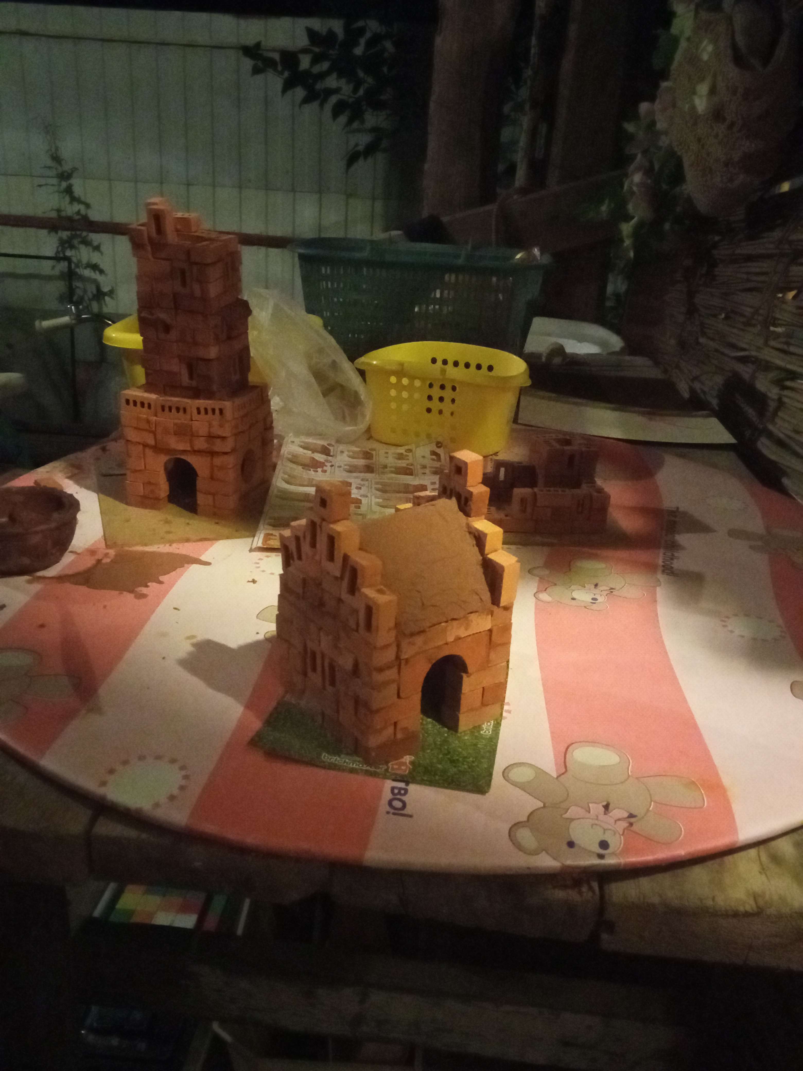 Совершенно верно. Мы этот домик, что на Вашем фото, два раза построили, и интерес к нему пропал. Первый раз пробным был, второй - начисто, и крышу покрыли глиной. ) Вот я и думаю, что на один раз во дворе или на природе построить такое - интересно. А чтобы подольше простояло, разные добавки опробовать, но такие, чтобы ребенку было безопасно. Глина с крахмалом и песком тоже смывается без особого труда, нужно подольше подержать. И по времени таких ограничений для укладывания нет, как у крахмальной смеси, которая быстро застывает. .... А если сделать конструктор по типу глиночурки, то он будет многоразовым.