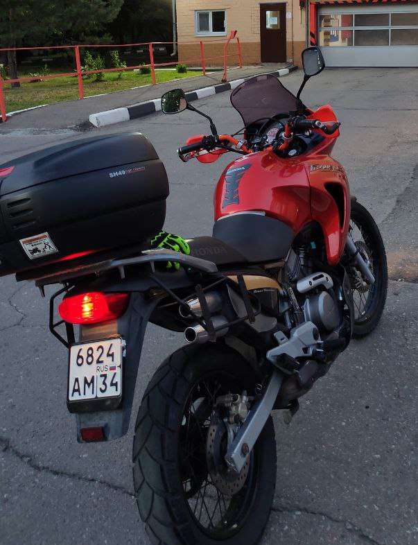 - Отличное техническое состояние. Недавно проведено большое ТО - заменены антифриз и масло с фильтром, воздушный фильтр, полностью новое сцепление (пакет дисков, пружины, выжимной подшипник). Заменена тормозная жидкость в обоих тормозах. Шлицы ведущего вала живее всех живых, свежие звезды и цепь. Вилка сухая, сальники заменены. Новый аккумулятор, почти новая резина Michelin Anakee 2.