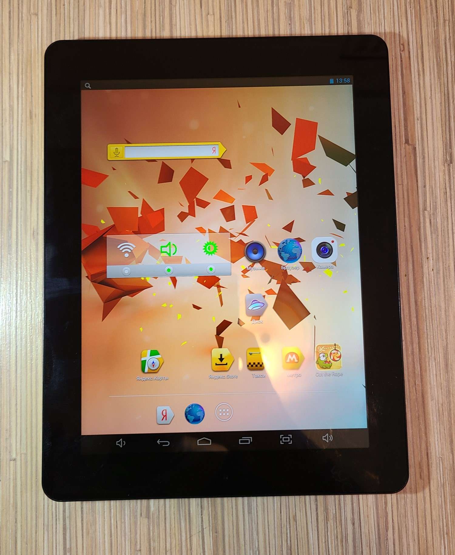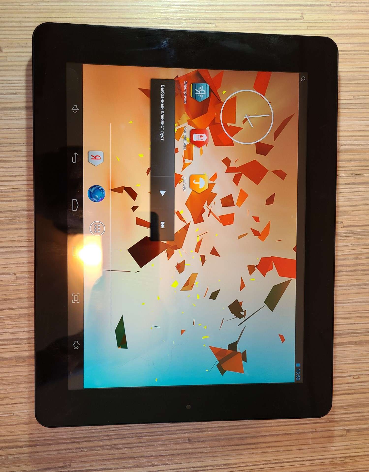Гм, похоже поторопился я, не потестив устройство как следует, и выложил на продажу. 89% - показывает 9 часов 50 минут от батареи... Android 4.2.2 Продажа на паузе, попробую прошить Всё же устройство любопытное, четыре ядра Allwinner BoxChip 1.4 A31 и 2 Гб оперативки Но самое любопытное, экран IPS с офигенным разрешением 2048x1536 Батарейку на него в одном из отечественных магазинов видел где-то за 1500.