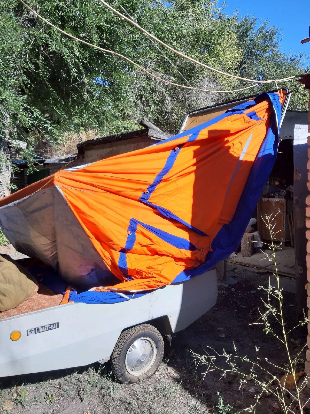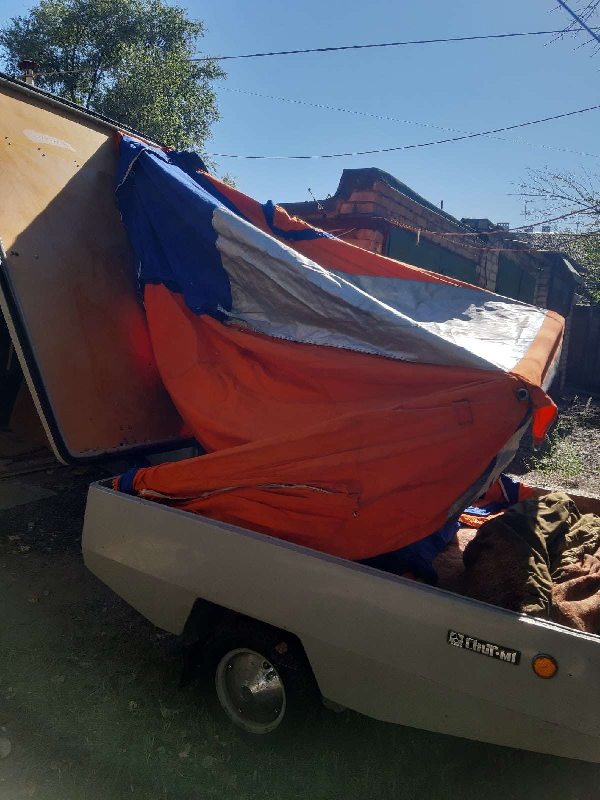 Прицеп зачетный! Много лет гонял с таким на Дон. Внутри весь бивачный шмурдяк,сверху лодка.Очень удобно! Только палатку надо пропитать сильно разбавленным клеем пва и оставить до полного высыхания и полимеризации,тогда любой дождь можно пережить.