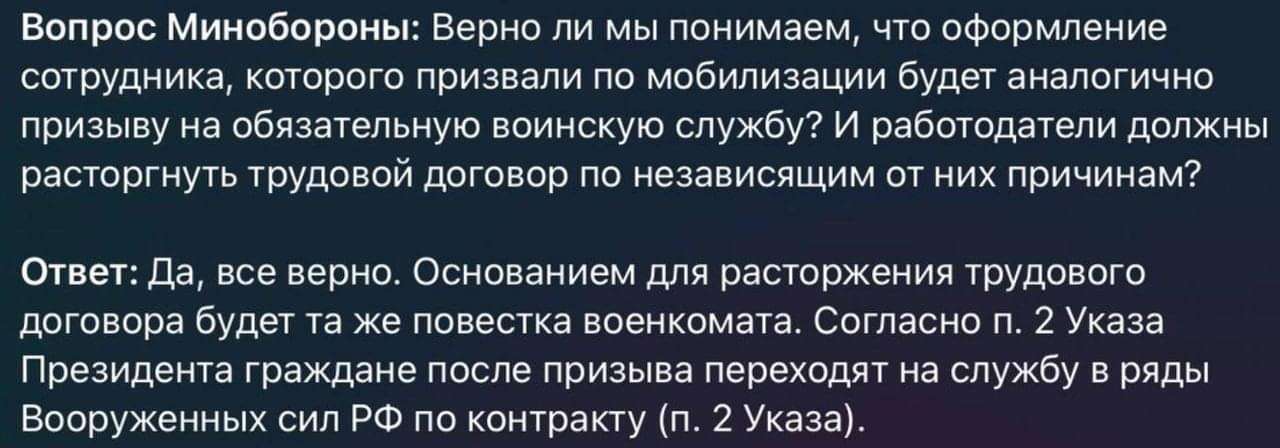 И с работы сразу уволили или "в ожидании"? Кстати по мобилизации прекращение службы - это по достижение предельного возраста (65) или по состоянию здоровья.