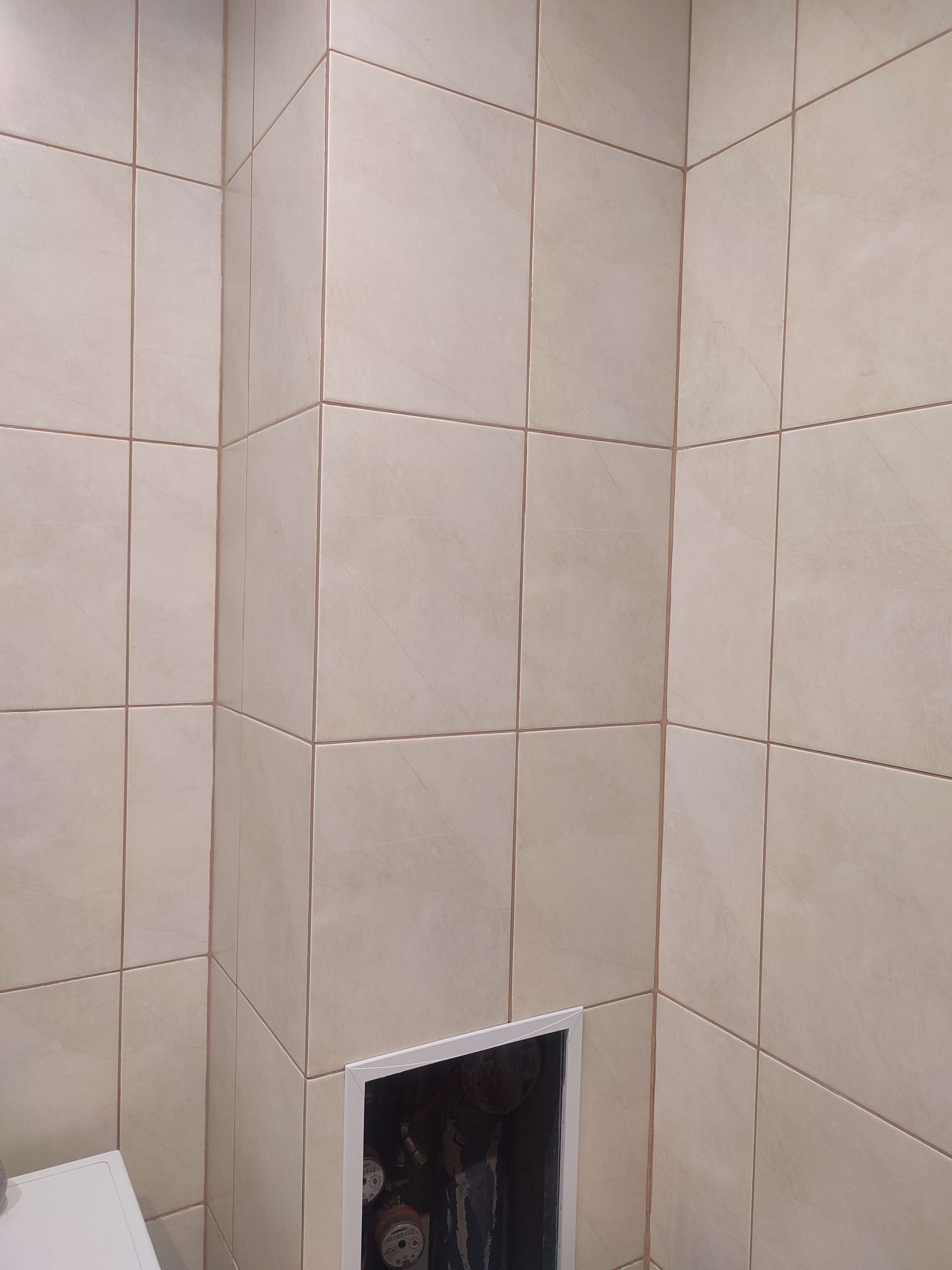 Собственно нужно аккуратно демонтировать порядка 6 плиток в ванной, которые закрывают стояк водоснабжения После работ управляющей компании нужно положить их заново