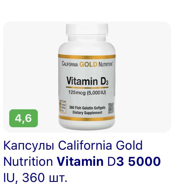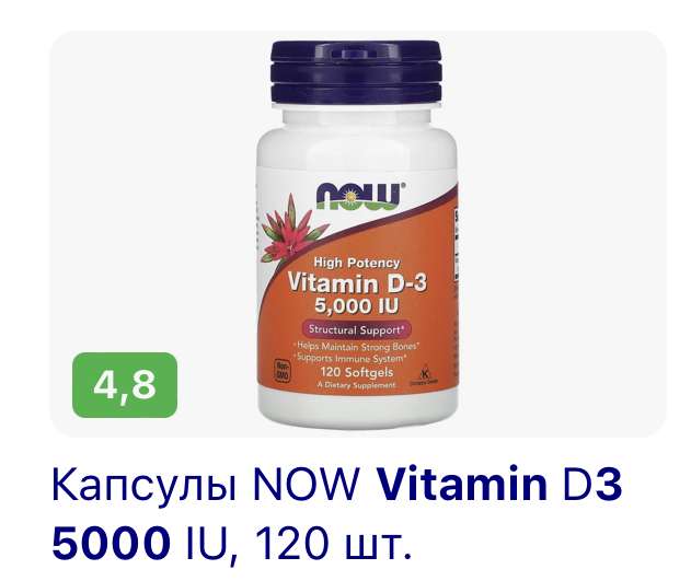 @ahdpe, я на озоне в каплях беру вот такой https://ozon.ru/product/170151812?from=share_android если по 5000 принимать, то пузырька хватит на несколько недель @Головач Лена, блажен, кто верует. а кто сделает анализ, тот узнает, что на самом деле всё плохо. чтобы вырабатыаать витамин д самому, нужно иметь профессию типа каменьщика и работать обнаженным.
