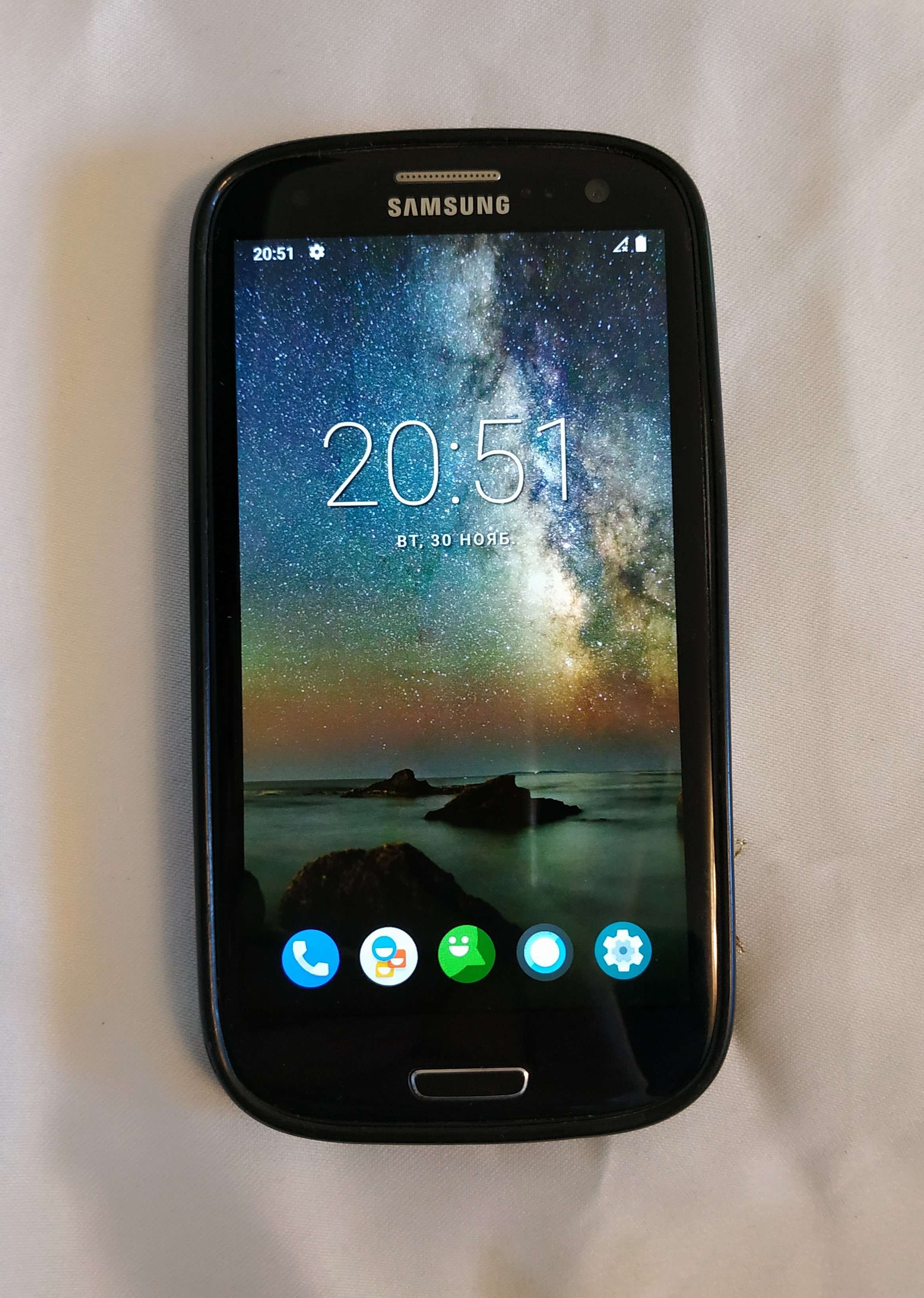 Смартфон Samsung Galaxy S III Duos (GT-I9300i) "вьетнамец" 4,8" 720 x 1280 HD AMOLED, сенсорный Qualcomm Snapdragon 400 MSM8226 4x 1.4 ГГц Графен Adreno 305 8.0 / 1,9 Mпикс. AGPS, ГЛОНАСС Wi-Fi 802.11a/b/g/n 2,4 + 5 ГГц Wi-Fi Direct Bluetooth v4.0 NFC Гнездо для наушников 4G LTE Нет Датчик Холла, RGB датчик, акселерометр, геомагнитный датчик, гироскопический датчик, датчик освещенности, датчик присутствия По некоторым данным, в нём также есть AptX Прошит на линейку За батарейку точно не скажу, может 2-3 дня. Небольшие потёртости на корпусе, небольшие царапки на дисплее. В остальном состояние хорошее. Можно использовать как "запасную звонилку", читалку, аудио-видеоплеер. Комплект смартфон, чехол. 950 р. +7-919-797-59-57 Кр. Окт.
