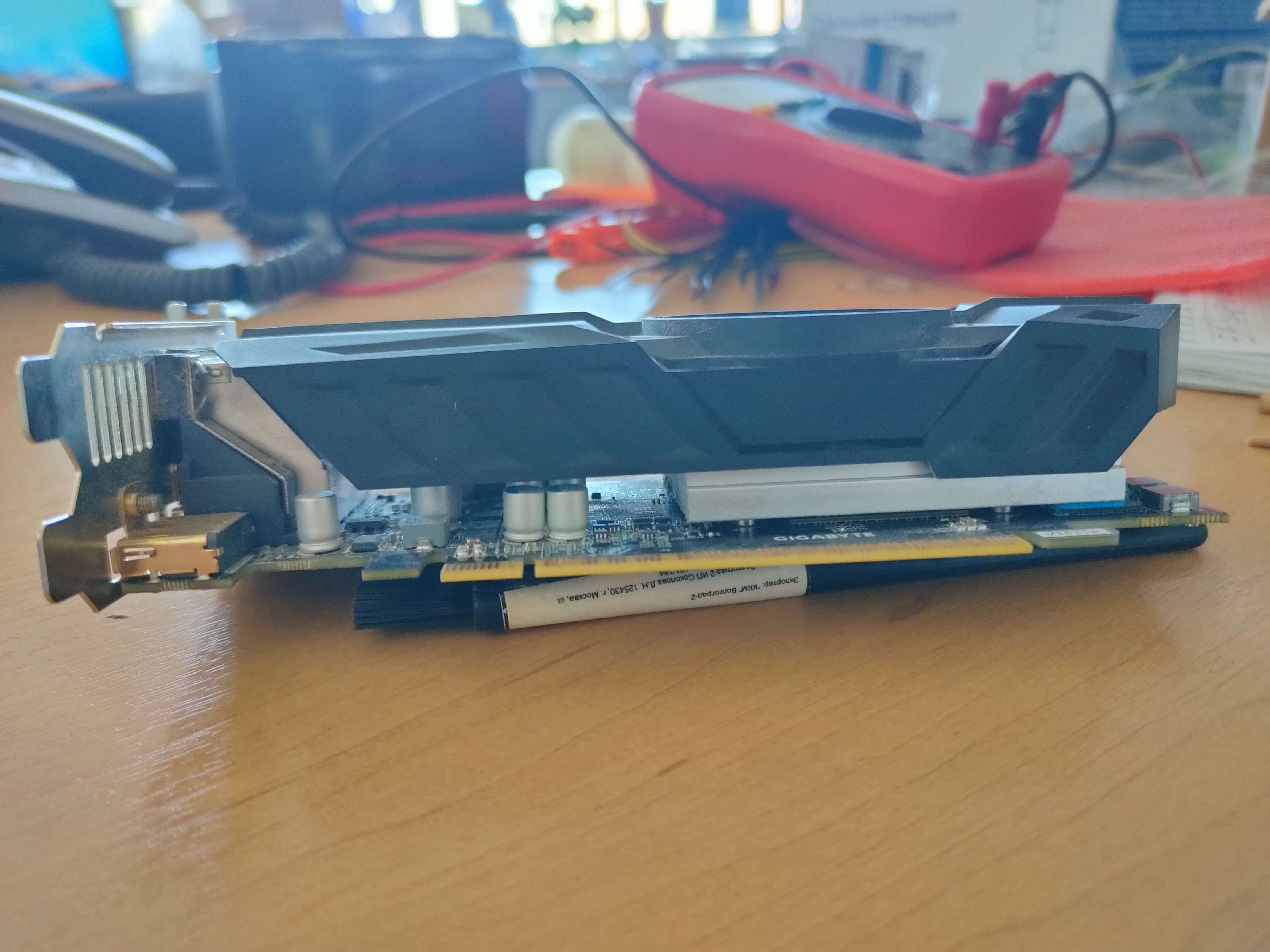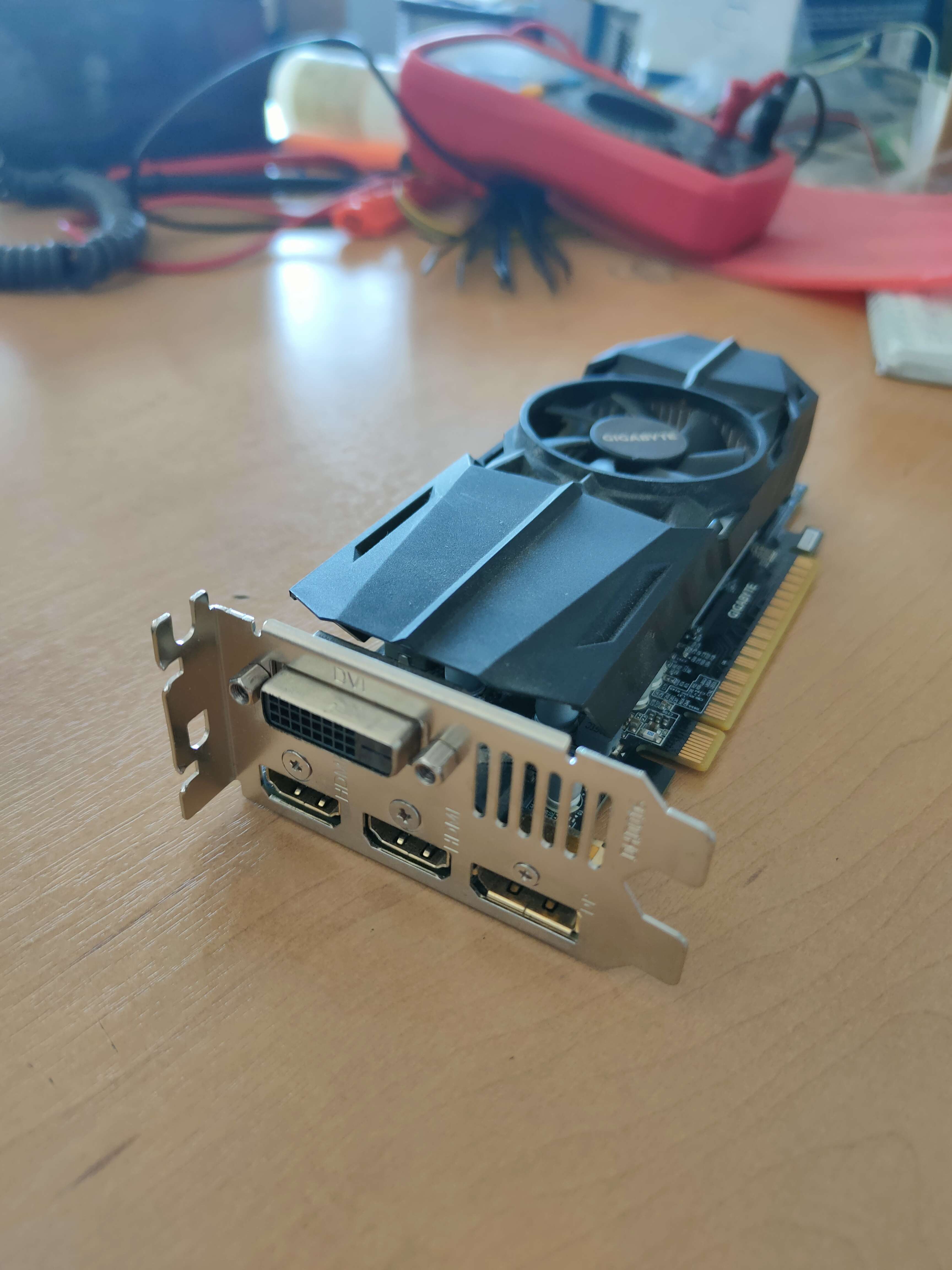 Низкопрофильная видеокарта Gigabyte GTX 1050 Ti. На удивление, удачная карта. Не перегревается. Без нагрузки бесшумная. Под нагрузкой, то же нет особого раздражающего шума. Радиатор, так же, охлаждает и память. Есть 4 видеовыхода на любой вкус и цвет. GeForce® GTX 1050 Ti OC Low Profile 4G Описание | Видеокарты - GIGABYTE Russia Из минусов - нет планки для полноразмерных корпусов ценник 5500. В соседней теме есть отличный SLIM корпус для него https://forum-volgograd.ru/threads/342495/