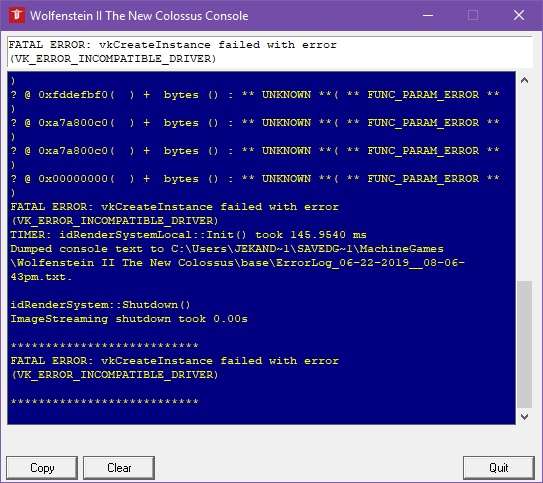 Гугл ничего не подсказал? https://it-true.ru/wolfenstein-2-the-new-colossus-vk-error-initialization-failed/ https://stalkermod.ru/Igroblog/wolfenstein-2-the-new-colossus-vk-error-initialization-failed.html