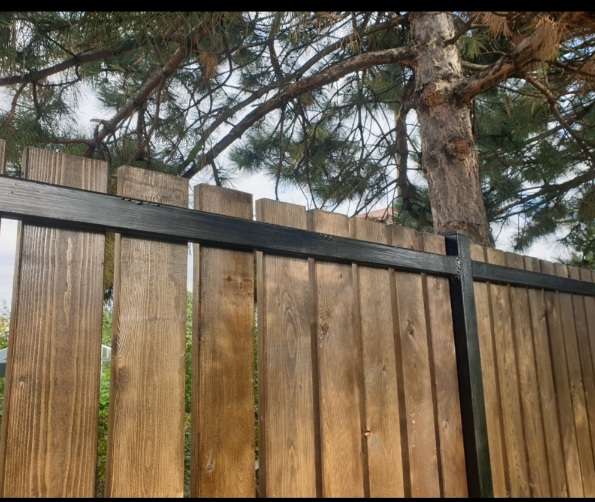 Фото не делал, да и не передаст оригинал. В Оби есть пробники с покрытием. Там и брал. Покрывал беседку пульвером, но очень плотно, лет 5 назад гелем. В прошлом году делал забор. Неспеша кистью (как по феншую) в два слоя.