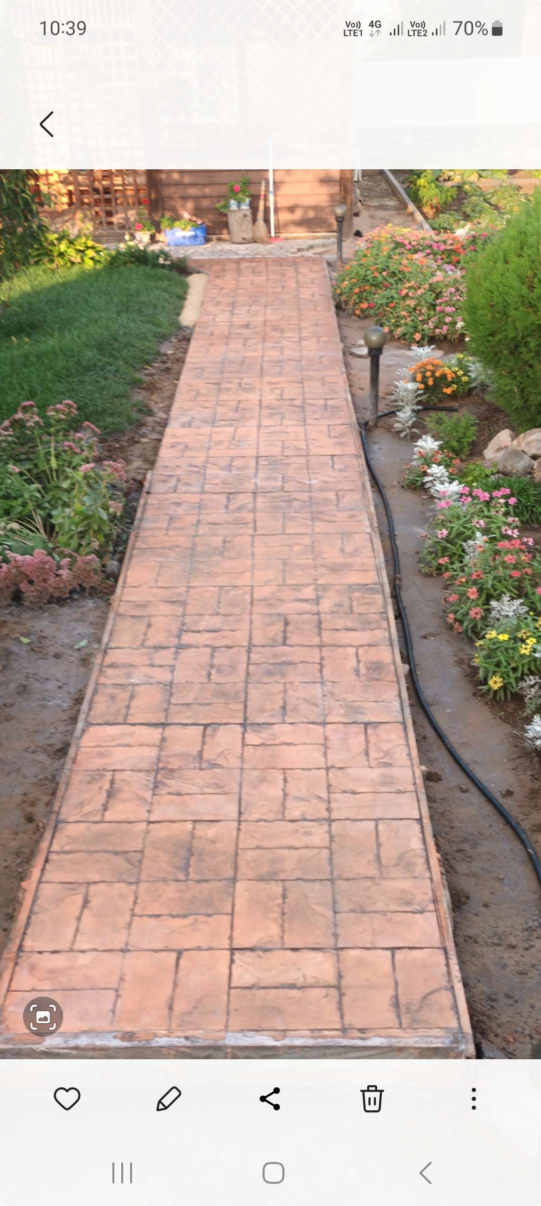 Сам делал. Дорожка бетонная была . Поднял на 3 см . Сетка , стяжка 3см ( делал 1 к 2 ( цемент песок ) + пластификатор . Самое дорогое это штамп .