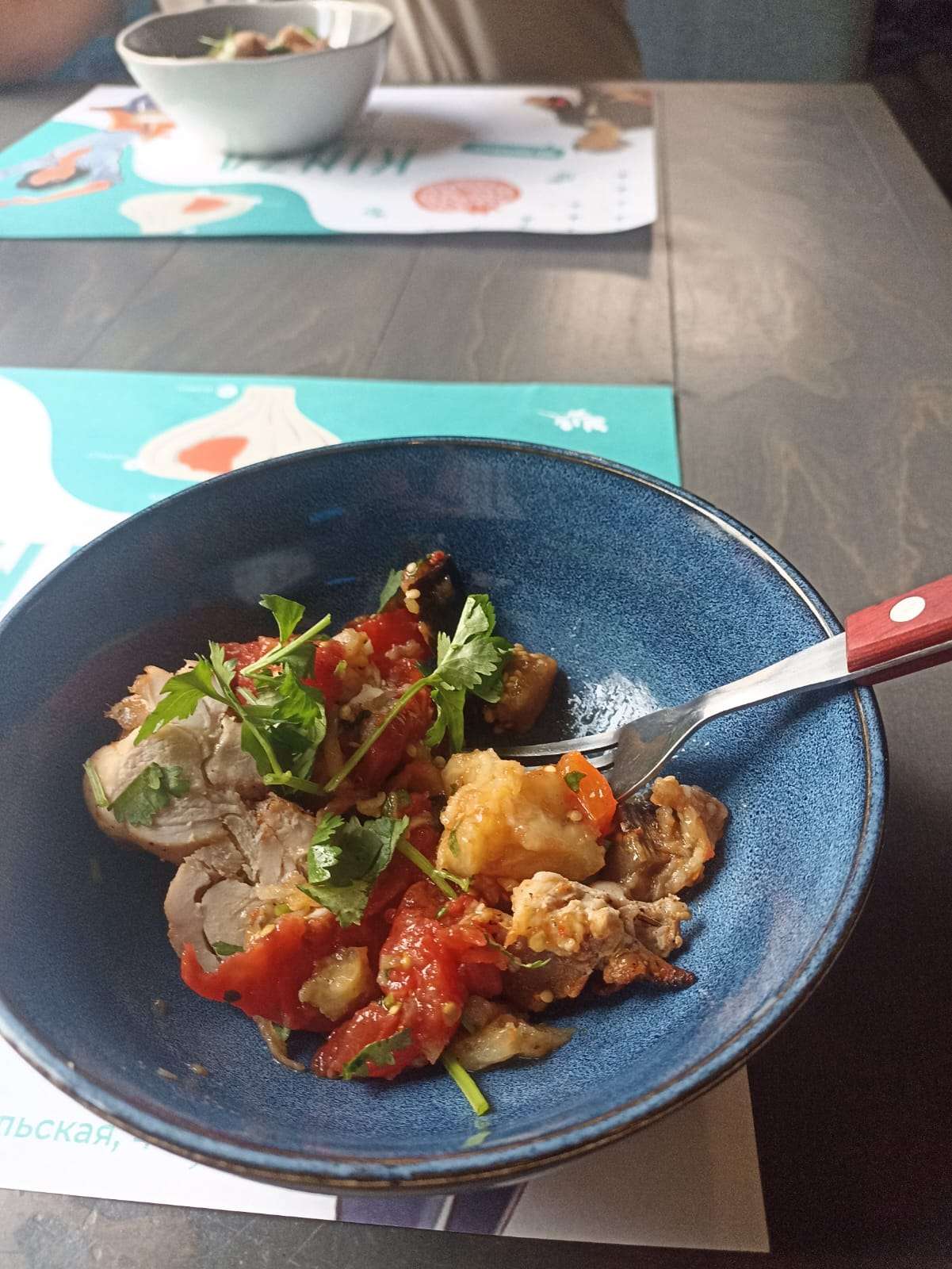 Очень понравилось в Кинзе - обедать! Борщ - Огонь, с Салом и луком подают. Салаты 2-3 вида мне понравились Шашлык из курицы и жареные овощи на 2е отлично! Ну и Морсик Брать меньший набор не выгодно 490 - 1,2,3 и "компот" 460 Без салата