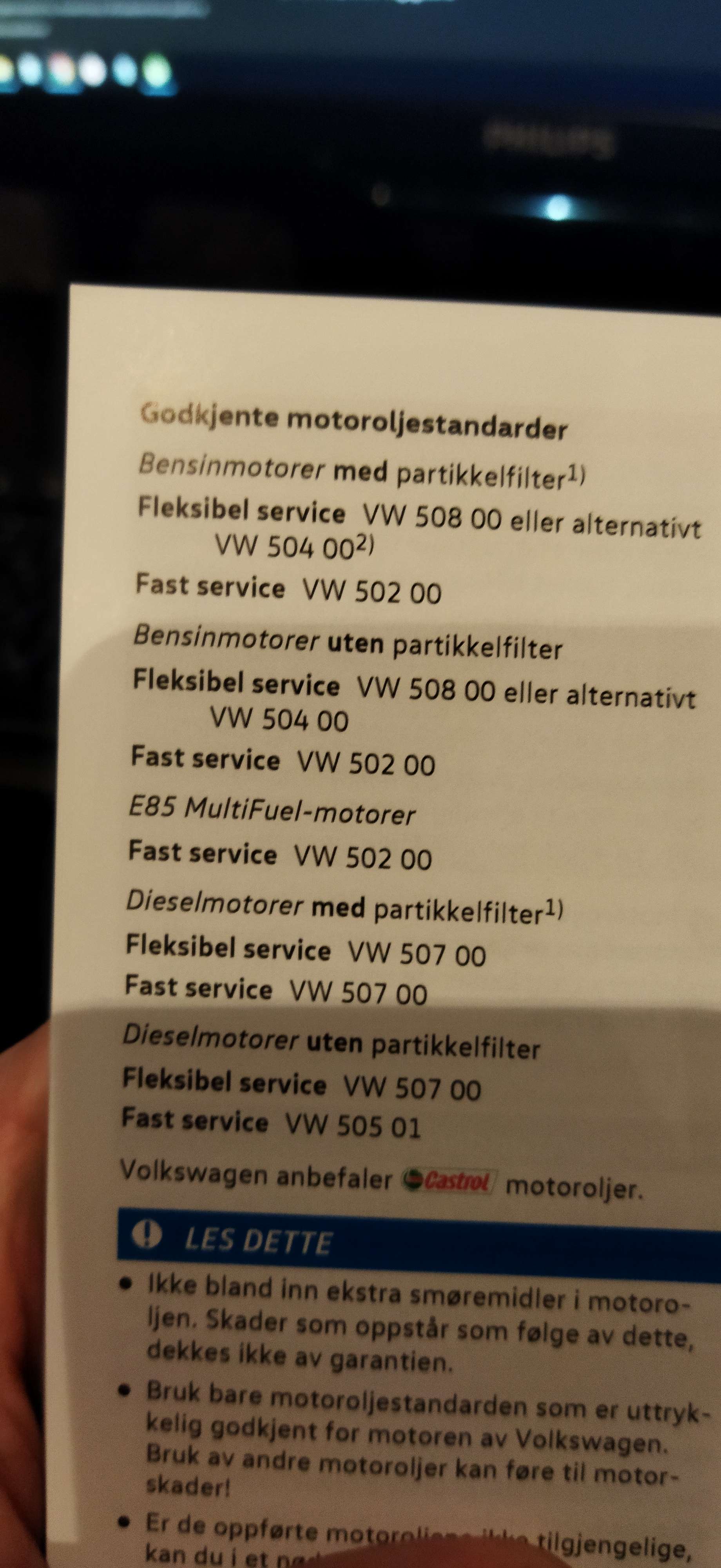 У меня Passat B8 из Норвегии, но суть ясна. По маслу только допуски при гибком и фиксированном интервалах: По бензину не лучше. Соответстие EN 228, всё.