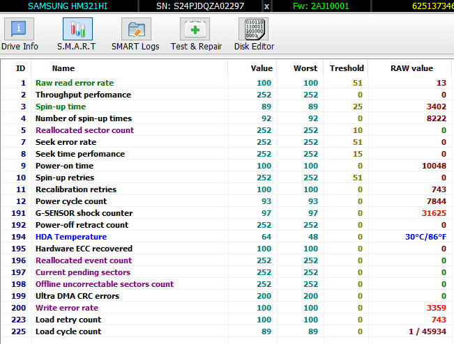 Есть 160 - WD1600BEVT Переназначенных секторов нет. Смарт GOOD - ценник 300 Есть тошиба. Там уже 1 переназначен. Рапартует виктория как Неидеальный. Но в целом, рабочий. Чтение запись нормально. Пусть 150р будет Ну и на последок Samsung 320. Тоже говорит, что не идеально состояние. Хотя, переназначенных секторов нет. Пущай ценник будет 250