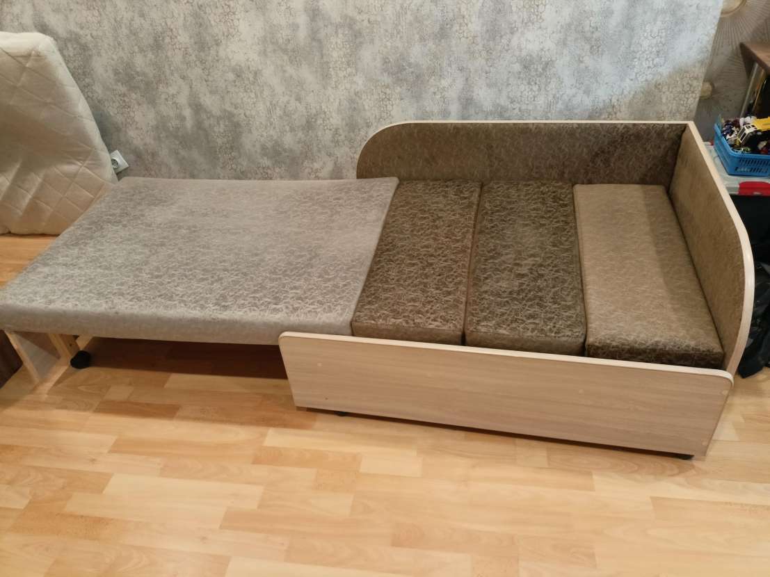 Детский диван (левый) мало б\у. Цвет шимо светлый. Размеры 80*190 в разложенном виде. Длинна дивана регулируется количеством подушек. Вместительный ящик для белья. 3000 торг Продаем так как ребенку не понравился. Забирать на Старте (ТЗР)