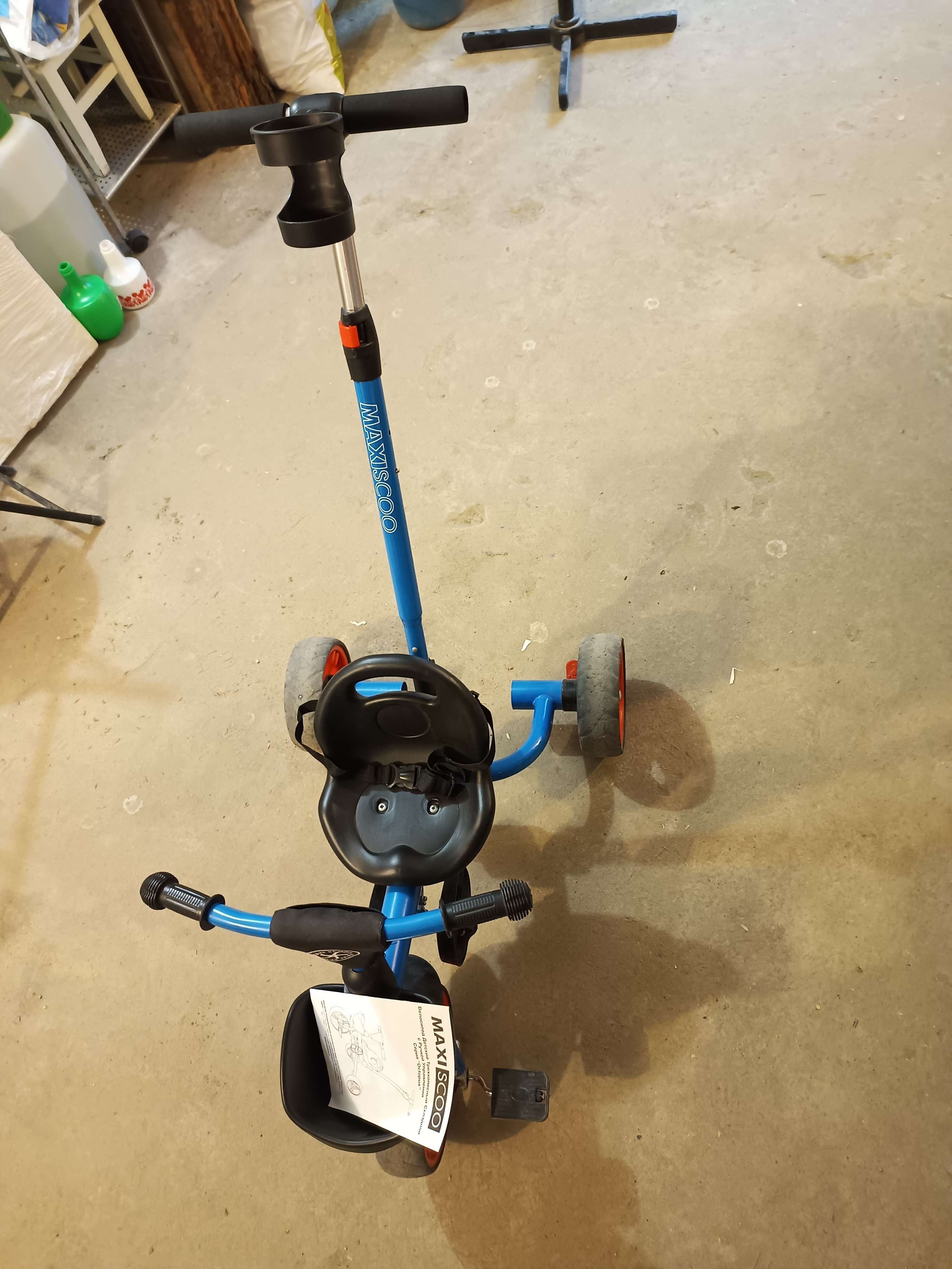 Велосипед 3-х колесный детский складной Maxiscoo. Б/у. Состояние хорошее. Полный комплект, включая инструкцию. Продаю в собранном виде. Кому нужна родная коробка - есть и она. Складная конструкция. Родительская телескопическая ручка-толкатель с возможностью контроля направления движения. Колеса с функцией свободного хода переднего колеса. Удобное пластиковое сиденье с ремнем с ручкой для переноски. Корзинка на руле для перевозки мелочей. Прямой руль с мягкой накладкой с кармашком. Устойчивые широкие колеса (EVA). Переднее колесо – 10”. Задние колеса – 8”. Блокировка задних колес. Прочная рама. Вес велосипеда 6,4 кг. Максимальная нагрузка 35 кг. Возраст от 1 года. Цена: 1000 руб. Писать в личку или звонить по телефону +7-903-373-09-66, Олег.
