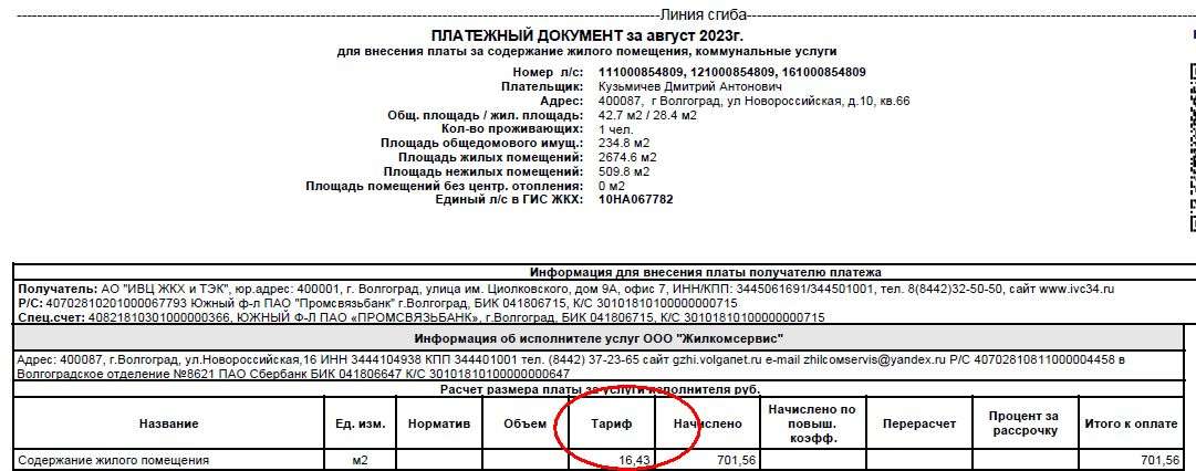 Волгоград.ул. Новороссийская, 10 (без лифта и мусоропровода. 4 этажа 4 подъезда 1962 года выпуска, без пробега за границей) центральный район. 2023 г. Август. УК "Жилкомсервис" 16 р. 43 коп. за 1 кв.м.
