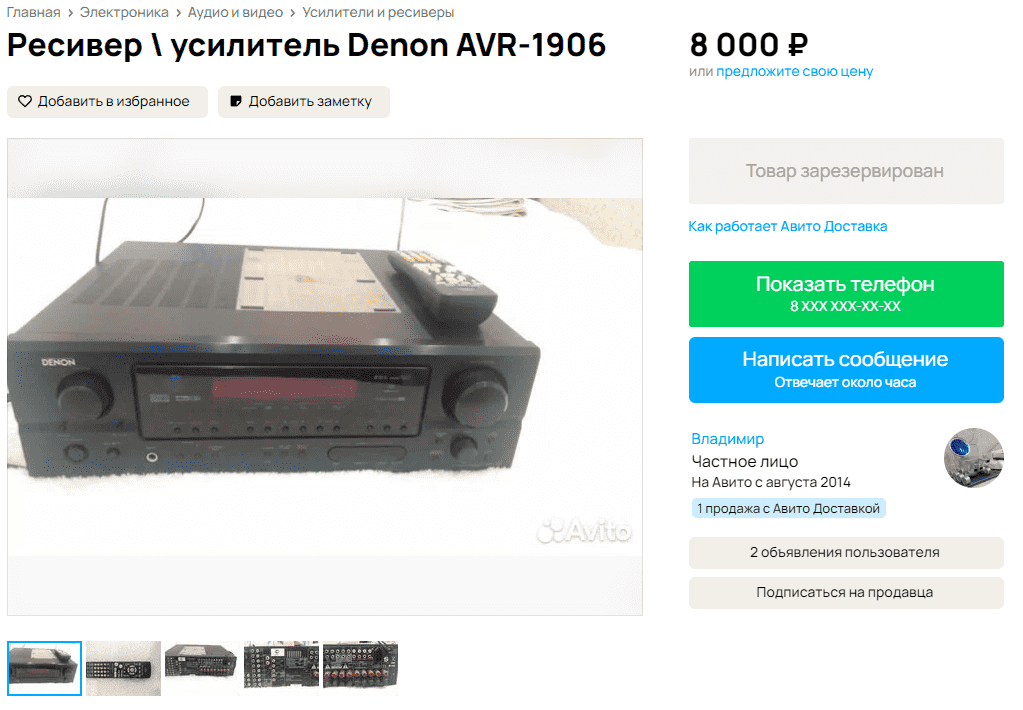 Хоть и нечасто включаю, но все же решил обновить ресивер. К продаже любимая игрушка Denon avr - 1905. Описание https://archive.stereo.ru/profile.php?tree_id=37&product_id=17090.html . На данный момент можно его послушать, пока подключен к Boston Acoustics. Отличный рес, но хочется обновления. Состояние на 5-внешне, на 5+ по работе. В Комплекте пульт. По цене хочется 15 тысяч рублей.