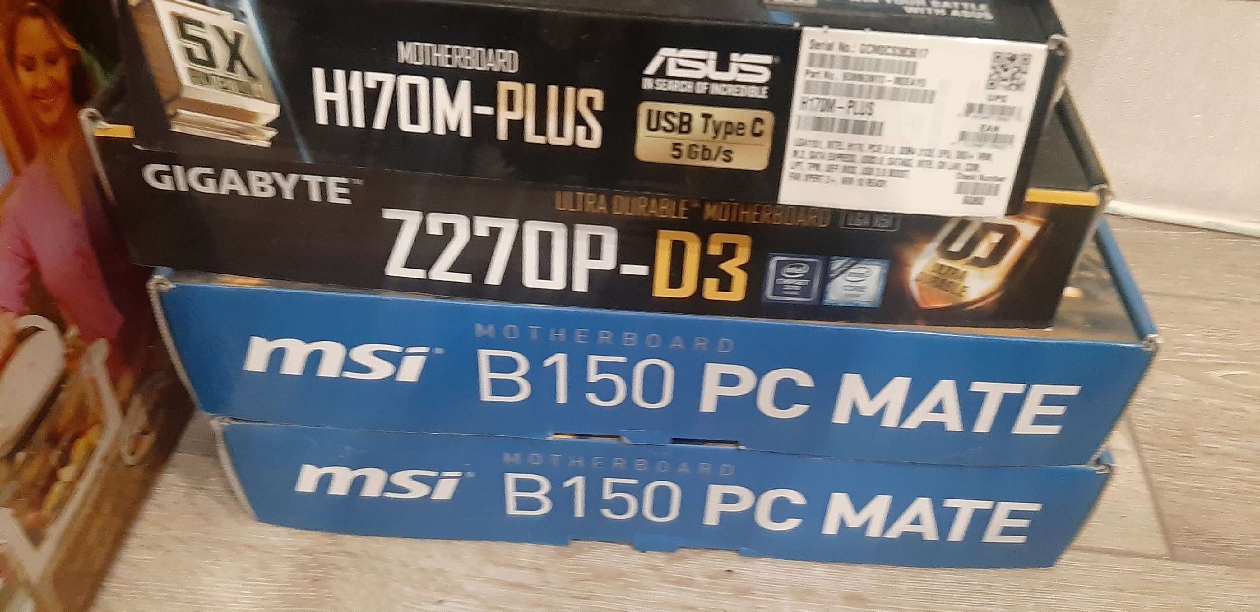 @oesoes, Не дождался ответа в ЛС, напишу здесь! предлагайте сразу цену! MSI b150 pc mate, 2шт, полный комплект. Asus h170m-plus, 1шт, полный комплект. Gigabyte z270p-d3 1шт, полный комплект. Asus prime h270-pro 1шт без комплекта. Есть обвесы к ним: проц 2 ядра, память по 8гб корсар вендженс, кулер.