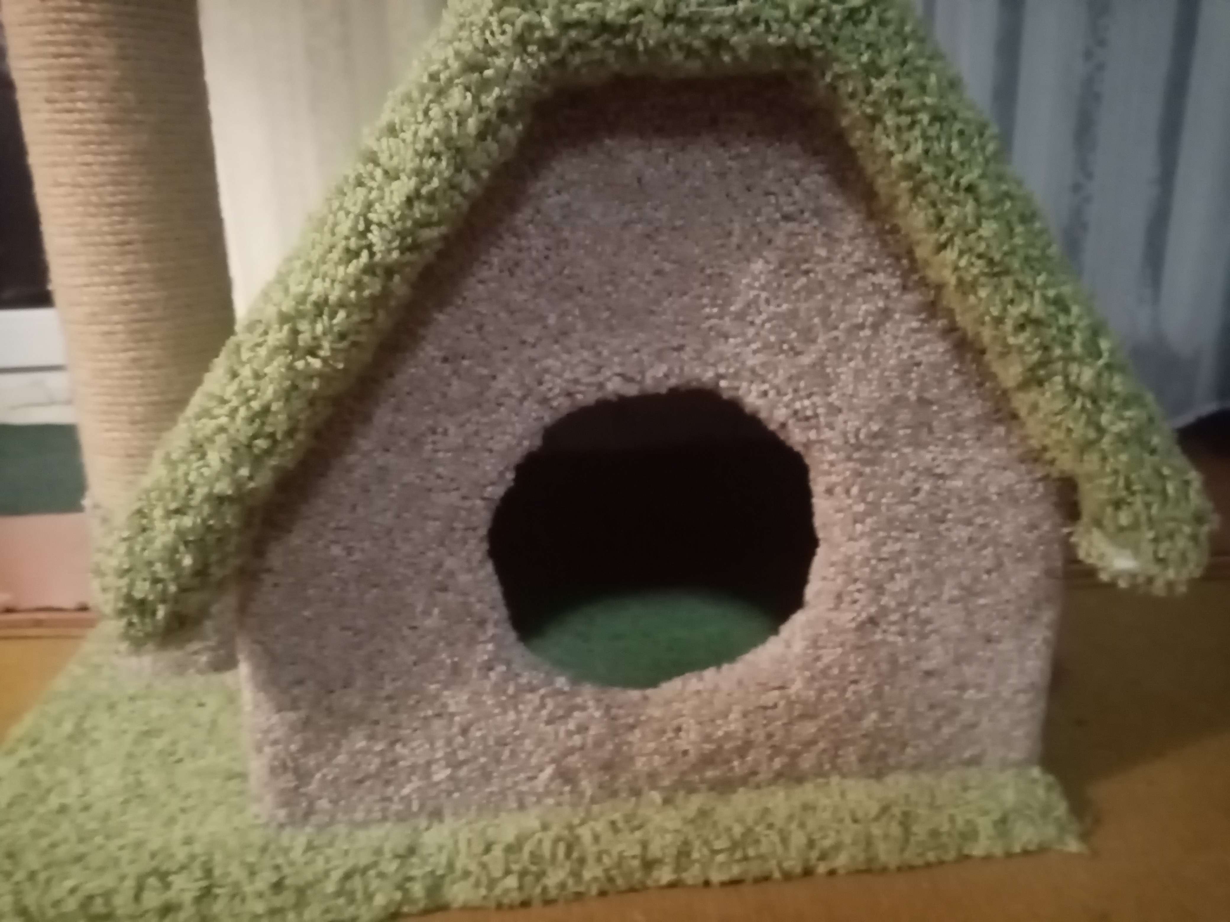 Домик для котят, котов и кошек. Домик с лежаком и когтеточкой(когтедралкой) Отличное состояние. Продаю так как ,котик уже подрос и не помещается на лежаке и в домик((( Сделан на совесть.