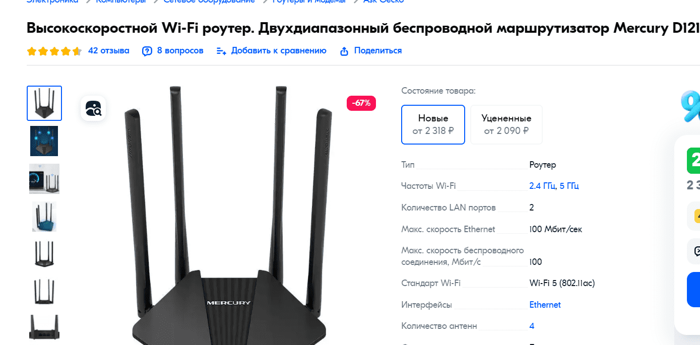 Роутер "Mercusys D121" поддерживает именно кальный гигабит или опять речь только про wifi ? На картинках вроде поддерживает. Но...