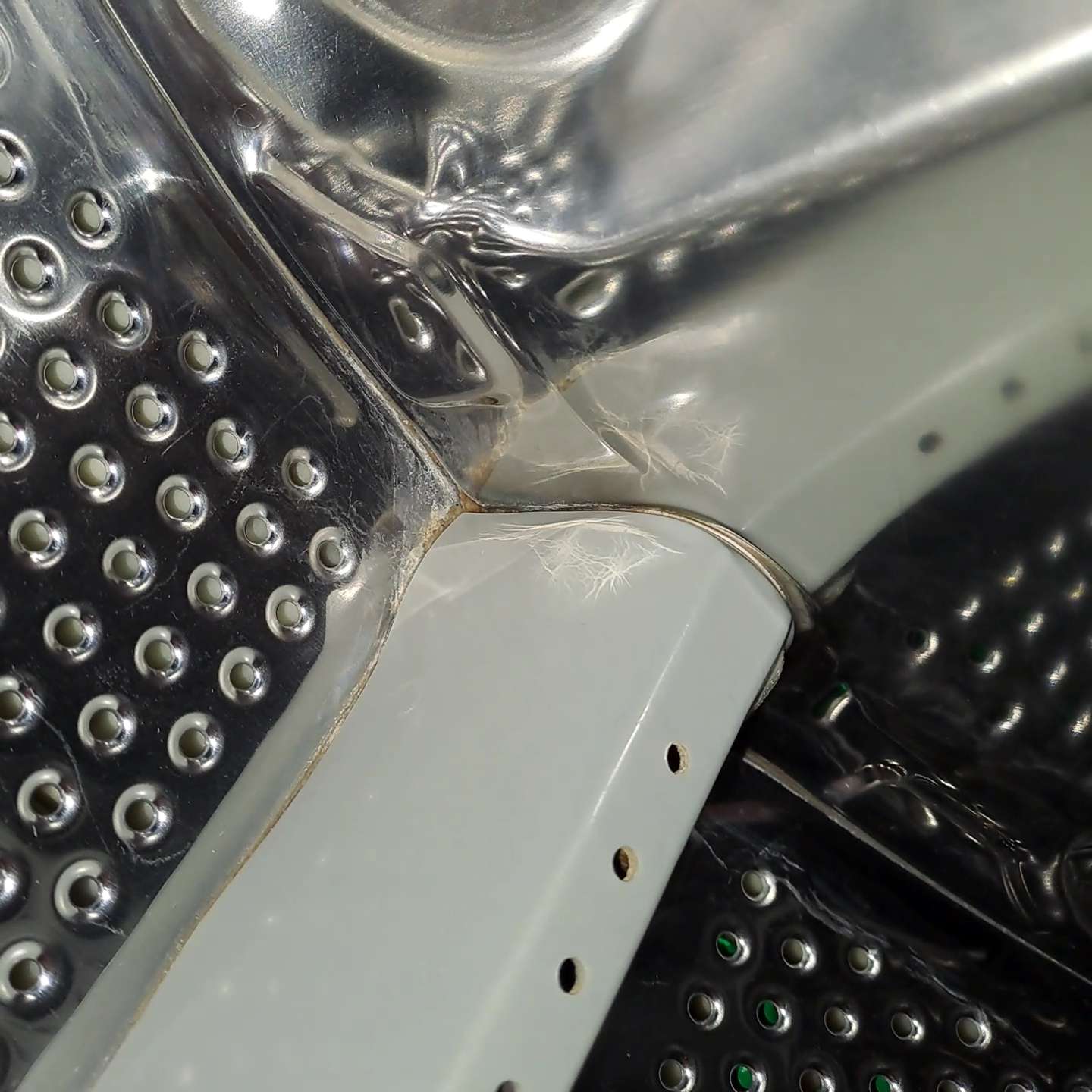 Сейчас обнаружил повреждения гребней в барабане. Какие-то в нормальной форме, а какие-то раздуты изнутри, виднеются наверное головки шурупов, которые судя по всему и растопыривают гребни. Мож они осыпаются внутрь барабана и эти остатки и цепляются ?