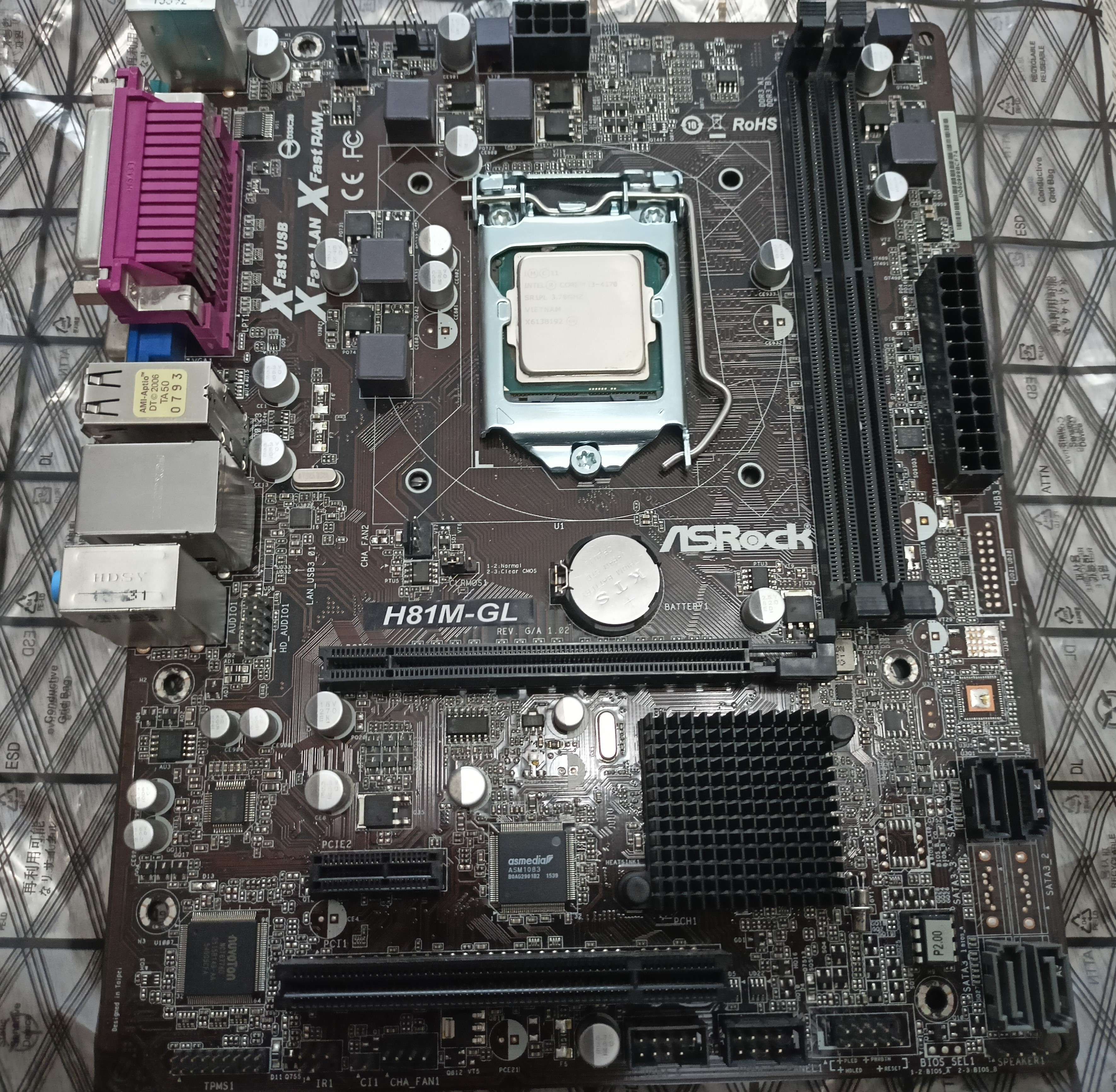 Продам материнскую платау ASRock h81m-gl + процессор i3 4170. Всё работает. Заглушка мп в комплекте. Ценник - 3500р