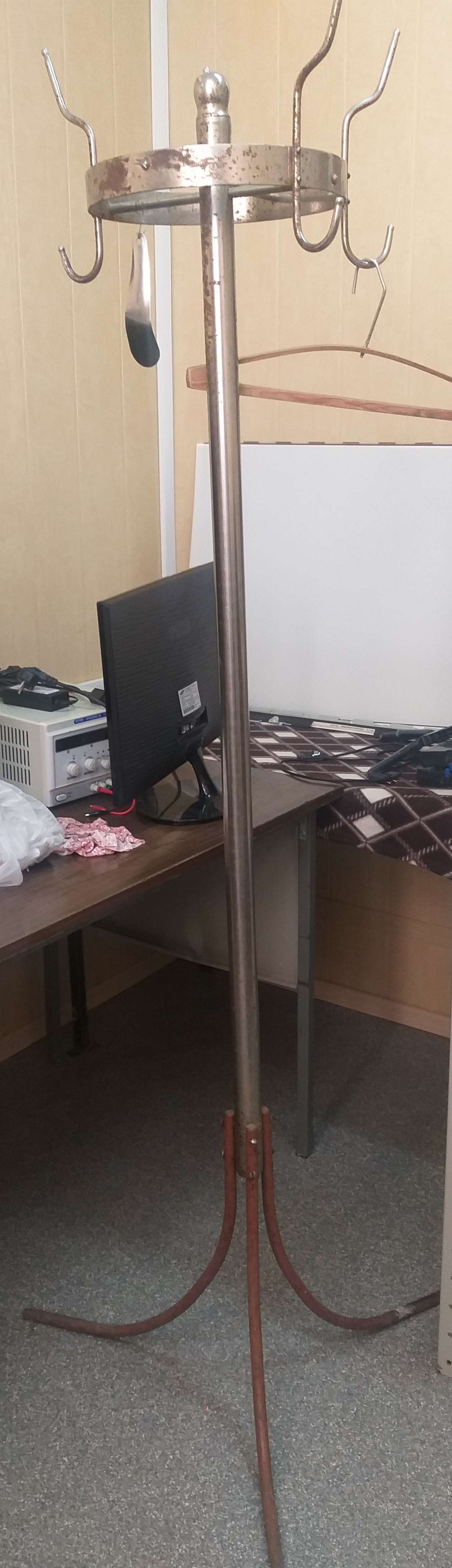 Продам напольную металлическую вешалку. Внешне потрепанная, но крепкая и устойчивая, если пройтись краской будет вобще отлично. Разборная, ножки и вершина откручиваются. Отдаю по цене металла - 300 рублей. Дзержинский р-н, 8-927-51О-63-58