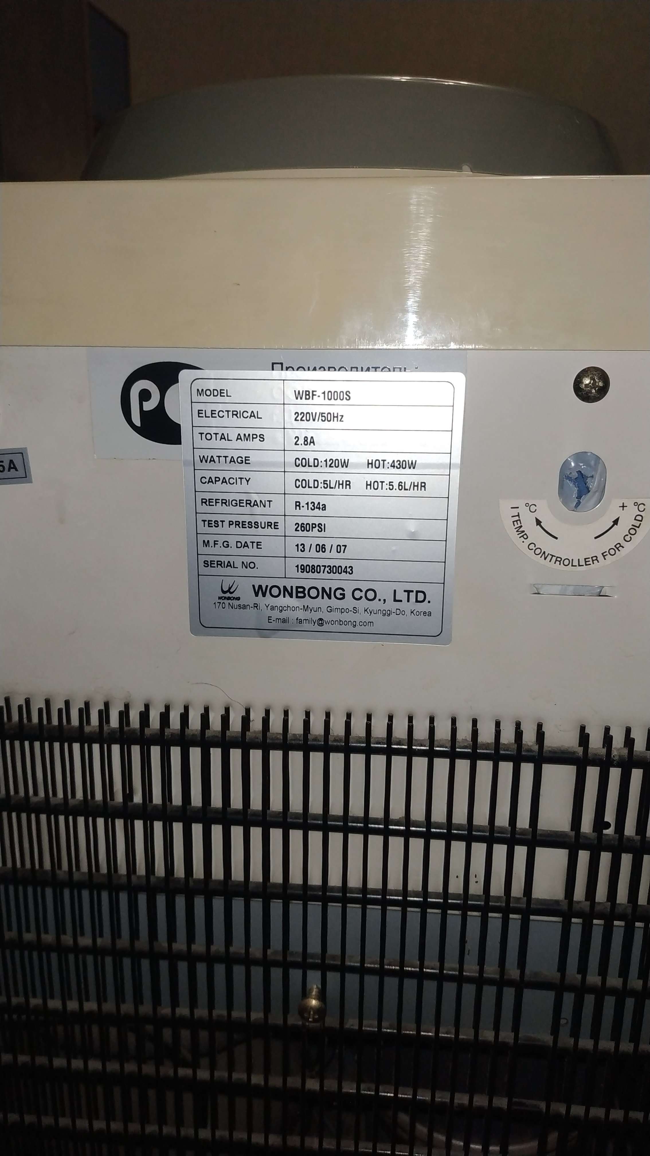Продаю кулер Wobong wbf-1000s. В отличном состоянии. Нагревает, охлаждает, все работает. Есть регулировка температуры нагрева. Написано - сделано в Корее. Профилактика проведена, внутри чист. В комплекте инструкция на русском языке с печатью продавца. В стоимость входят три прочные 19-литровые бутыли от воды "Кристальная" Цена 3500 рублей с бутылями, 3000 рублей без бутылей. Советский район, зеленое кольцо. 8-904-4242009