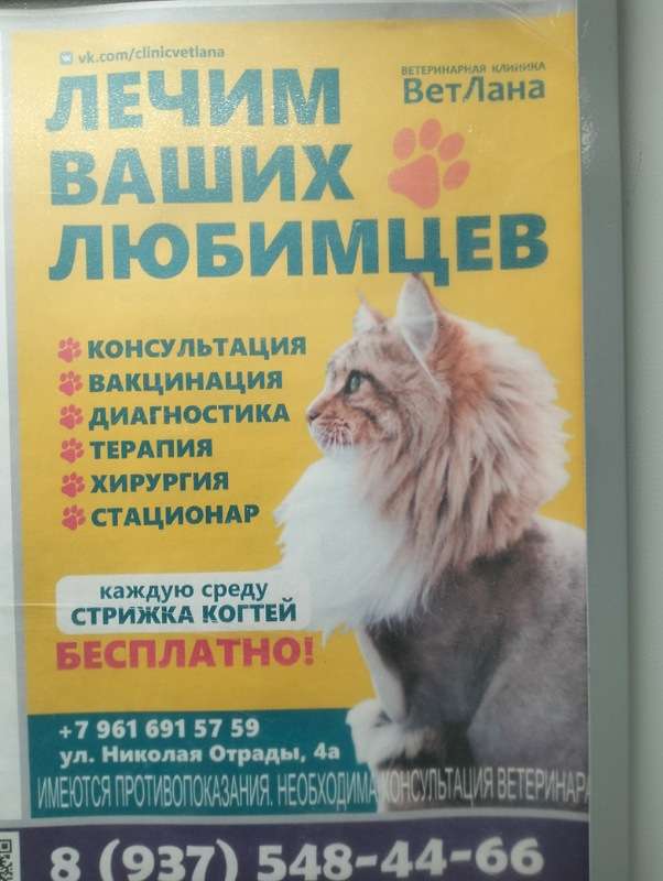Висит обьявение ветклиника, терапия, хирургия и т.д. А внизу приписка "имеются противопоказания требуется консультация с ветеринаром". Что это за херня? Левая клиника что-ли?