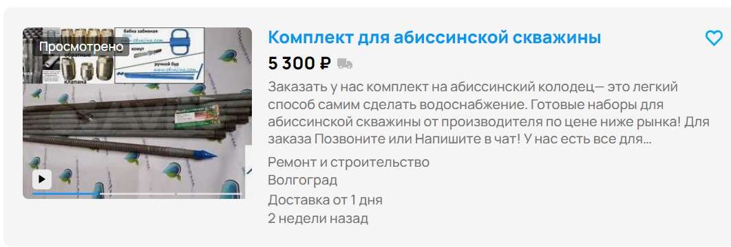 В случае абиссинской скважины это не вариант. Совсем. Так как, скважины, по сути, нет. Есть дюймовая труба забитая на определенную глубину.