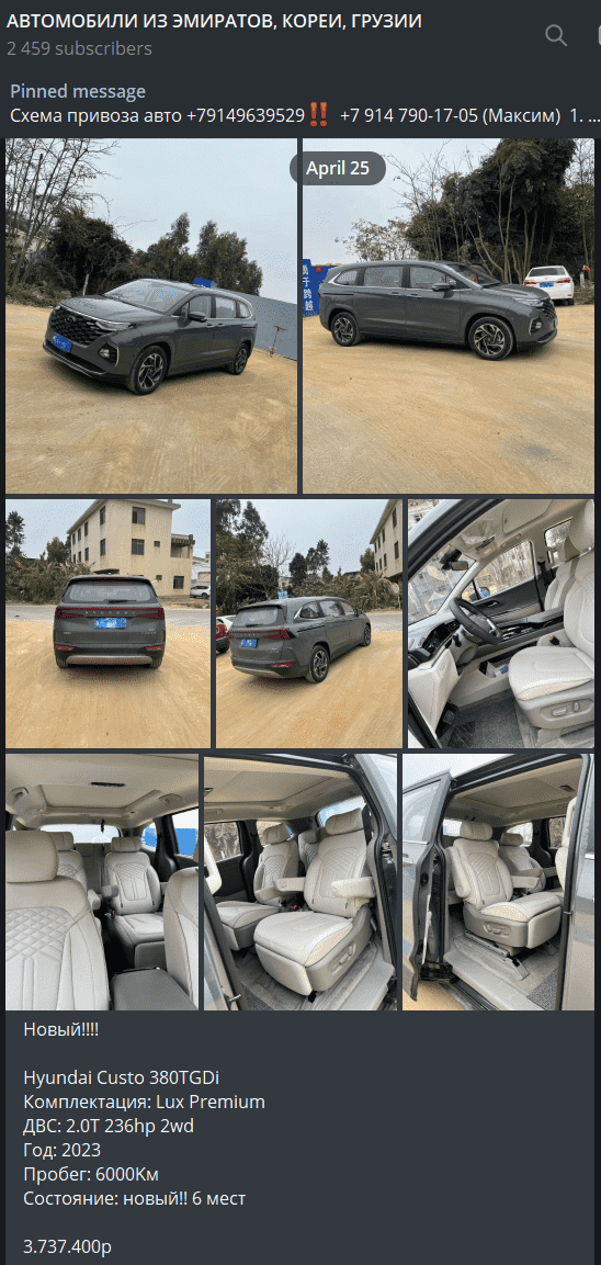 в телеге АВТОМОБИЛИ ИЗ ЭМИРАТОВ, КОРЕИ, ГРУЗИИ - притащут из-за бугра (грузия, арабы etc), все что движется$ и совсем новье тоже. Но с гарантией туган.