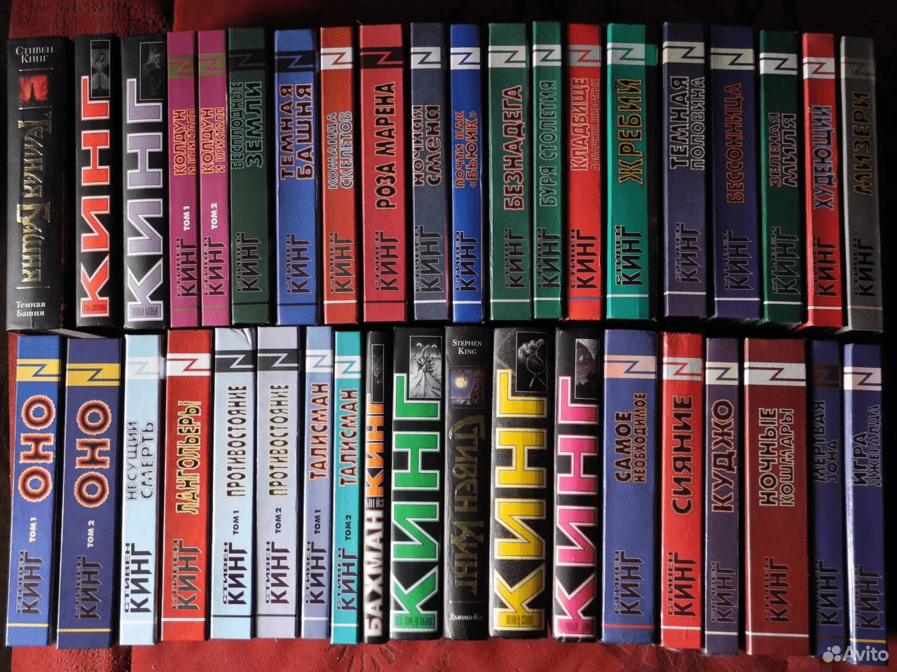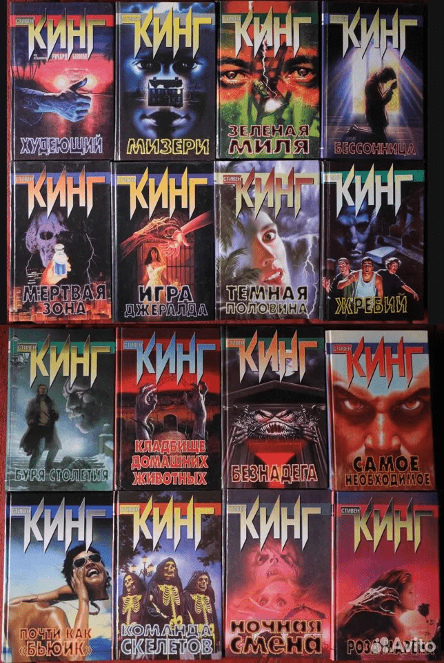 Понятно, что мало кто сейчас читает бумажное, но тем не менее. Собрание работ мастера ужасов и социального триллера Стивена Кинга. Всего 39 томов: Z-серия, Чёрная серия. Продажа только одним лотом! Все книги в идеальном состоянии кроме нескольких (отмечены в списке), фото дефектов по запросу. На авите висят за 12тыр, народ интересуется, но вяловато, форумчанам отдам за 10тыр. Список книг: "Серия Z" Стивен Кинг: Худеющий (АСТ, 1998, 416с.) Стивен Кинг: Жребий (АСТ, 2002, 477с.) Стивен Кинг: Буря столетия (АСТ, 2001, 381с.) Стивен Кинг: Мертвая зона (АСТ, 1999, 416с.) Стивен Кинг: Мизери (АСТ, 1998, 464с.) Стивен Кинг: Зеленая миля (АСТ, 1999, 496с.) Стивен Кинг: Лангольеры (Четыре после полуночи, ч.1 - Лангольеры, Секретное окно секретный сад) (АСТ, 1998, 400с.) Стивен Кинг: Несущий смерть (Четыре после полуночи, ч.2 - Библиотечная полиция, Несущий смерть) (АСТ, 1998, 512с.) Стивен Кинг: Оно (том 1) (АСТ, 1998, 576с.) Стивен Кинг: Оно (том 2) (АСТ, 1998, 720с.) Стивен Кинг, Питер Страуб: Талисман (том 1) (АСТ, 2001, 352с.) Стивен Кинг, Питер Страуб: Талисман (том 2) (АСТ, 2001, 352с.) Стивен Кинг: Бессонница (АСТ, 2001, 688с.) Стивен Кинг: Самое необходимое (АСТ/Мир, 1997, 688с.) (повр., задиры внизу обложки) Стивен Кинг: Ночная смена (АСТ, 1999, 464с., сборник рассказов) Стивен Кинг: Команда скелетов (АСТ, 2000, 400с., сборник рассказов) Стивен Кинг: Темная половина (АСТ, 1999, 560с.) Стивен Кинг: Куджо (Куджо, Цикл оборотня) (АСТ, 1998, 400с.) (повр., царапина сзади, пятна на пер.форз.) Стивен Кинг: Кладбище домашних животных (АСТ, 1999, 464с.) Стивен Кинг: Почти как "Бьюик" (АСТ, 2004, 445с.) Стивен Кинг: Безнадега (АСТ, 2001, 384 с.) Стивен Кинг: Игра Джералда (АСТ, 1998, 432с.) Стивен Кинг: Противостояние (том 1) (АСТ, 1998, 544с.) Стивен Кинг: Противостояние (том 2) (АСТ, 1998, 560с.) Стивен Кинг: Роза Марена (АСТ/Мир, 1997, 560с.) Стивен Кинг: Ночные кошмары (АСТ, 1998, 784с., сборник рассказов) (повр., надрыв обложки) Стивен Кинг: Сияние (АСТ, 1998, 512с.) (повр., расслоение корешка) "Черная серия" Стивен Кинг: Всё предельно (АСТ, 2004, 668с., сборник рассказов) Стивен Кинг: Блейз (Блейз, Память) (АСТ, 2008, 285с.) Стивен Кинг: Дьюма-Ки (АСТ, 2009, 671с.) Стивен Кинг, Питер Страуб: Черный дом (АСТ, 2004, 699с.) (повр., пятна на обрезе) Стивен Кинг: Ловец снов (АСТ, 2002, 733с.) (повр., пятна на обрезе) Цикл "Темная башня", твердый переплет. Стивен Кинг: Темная башня (Стрелок, Извлечение троих) (серия Z, АСТ, 1998, 592с.) Стивен Кинг: Бесплодные земли (серия Z, АСТ, 1998, 650с.) Стивен Кинг: Колдун и кристалл (том 1) (серия Z, АСТ, 2001, 382с.) Стивен Кинг: Колдун и кристалл (том 2) (серия Z, АСТ, 2001, 382с.) Стивен Кинг: Волки Кальи (черная серия, АСТ, 2004, 763с.) Стивен Кинг: Песнь Сюзанны (черная серия, АСТ, 2005, 637с.) Стивен Кинг: Темная башня (черная серия, АСТ, 2006, 811с.)