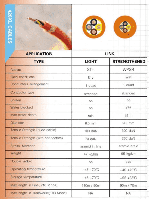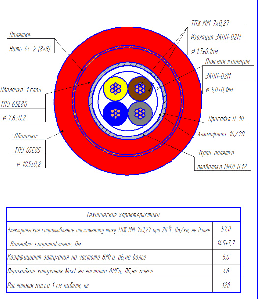А мы вот такую витуху делаем 4 жилы, скорость до 16 мегабит / секунду. Зато для суровых полевых условий. Внешняя оболочка - полиуретан, внутри кевларовая нить. На морозе не дубеет. В полях ее тракторами тягают, и ничего, живет И вот такую еще, но она вообще как чугунный мост стоит. Зато до 100 Мбит