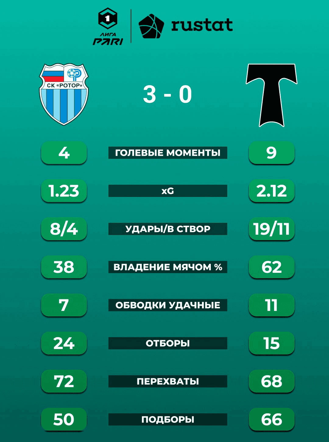 Судя по статистике матча это Ротор мертвый был, с диким отставанием во владении, но у них как то из 4х в створ 3 вошло. Матч не смотрел, тупо цифры глянул, тапками не кидать )