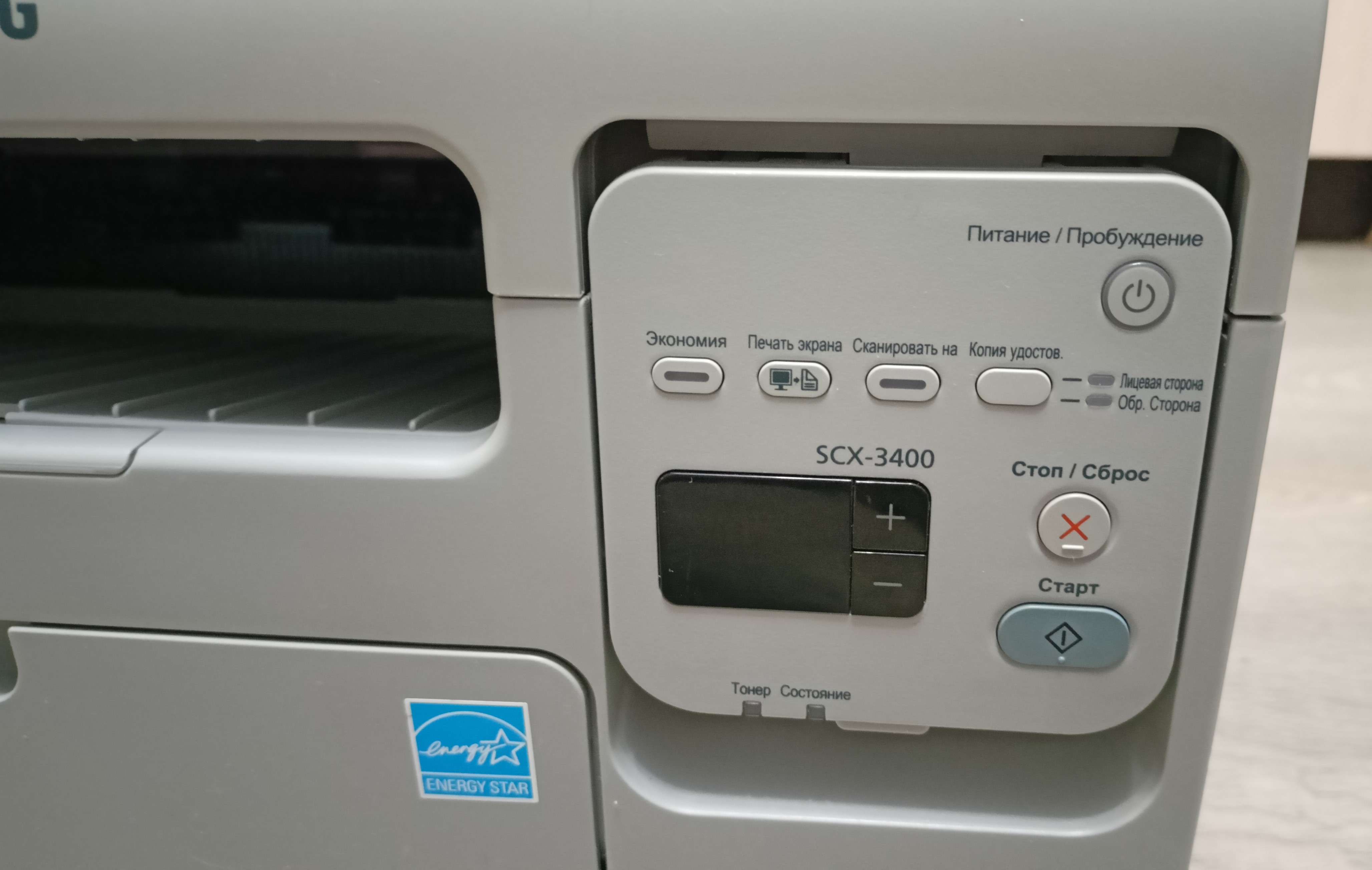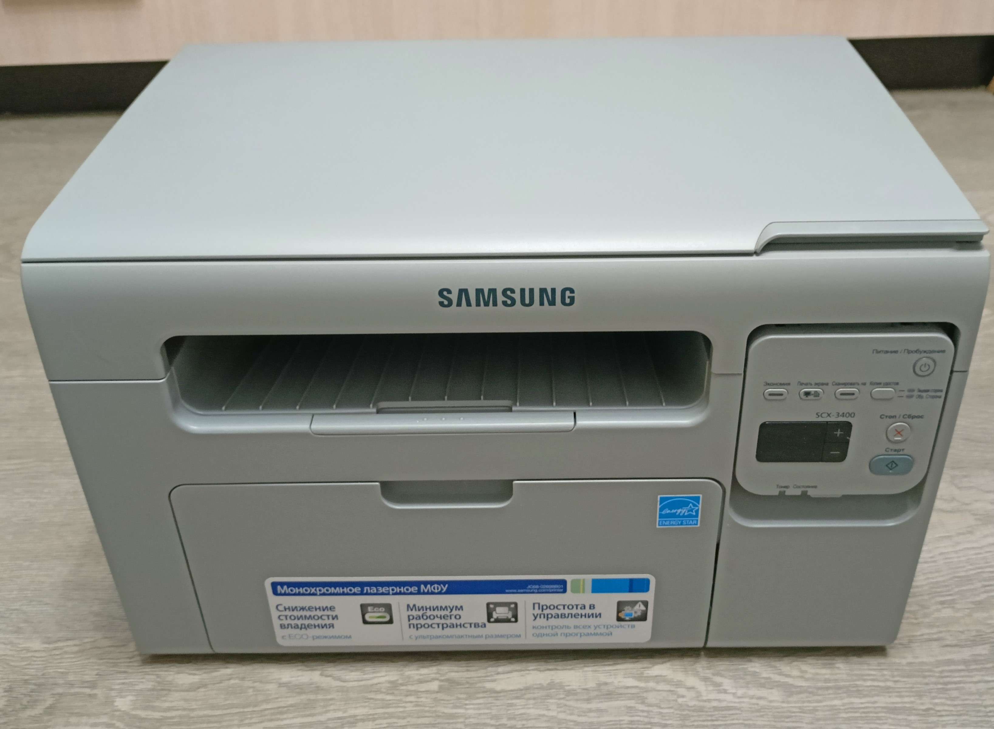 МФУ Samsung SCX-3400. Прошит. Пробег 3600 страниц. Установлен новый совместимый картридж. Провода для подключения к ПК в комплекте. Ценник 8000 руб.