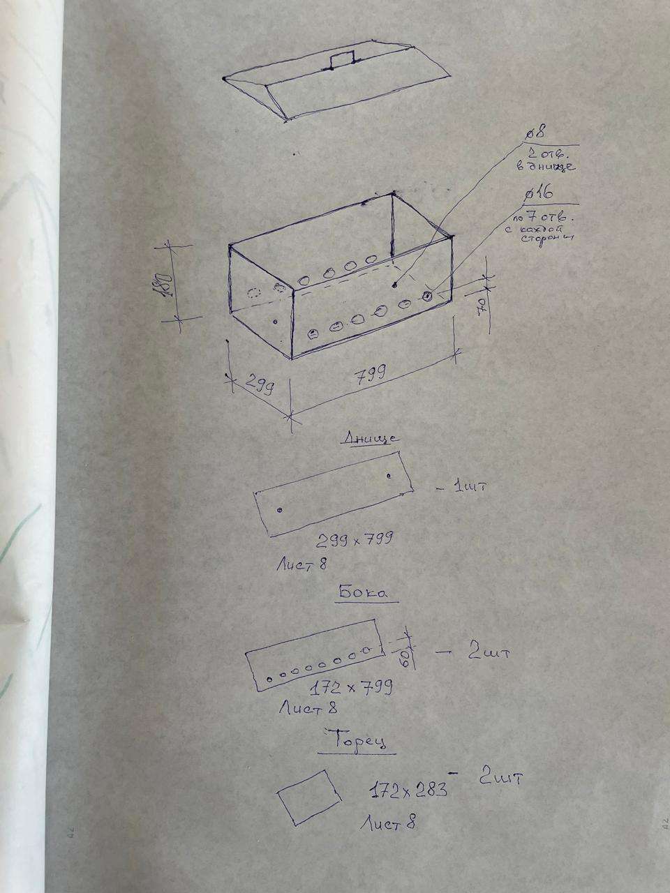 Все темы старые, решил не поднимать. Интересует изготовление мангалов нужно 10 шт +- 800*300*180 мм из 8-10 мм стали, по бокам отверстия 16 мм, в дне 2 шт 8мм, торцы глухие. Так же к ним сделать крышки, но это уже по месту и как мастеру легче-дешевле будет. Цена? Сроки? Антон 8-9о2-657-56-1пять