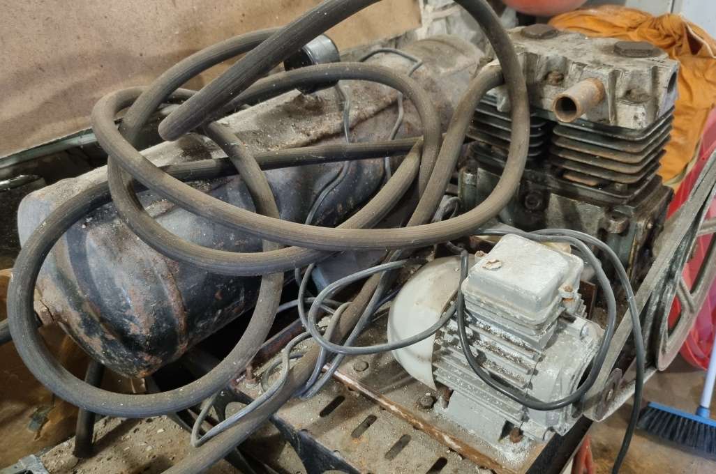 Какой-то самодельный компрессор, можете распознать и оценить? Крутится, что-то хрюкает. В таком состоянии скорее всего давление не нагнетёт нужна будет доработка. Электродвигатель (небольшой, в обычную розетку) не попал в кадр