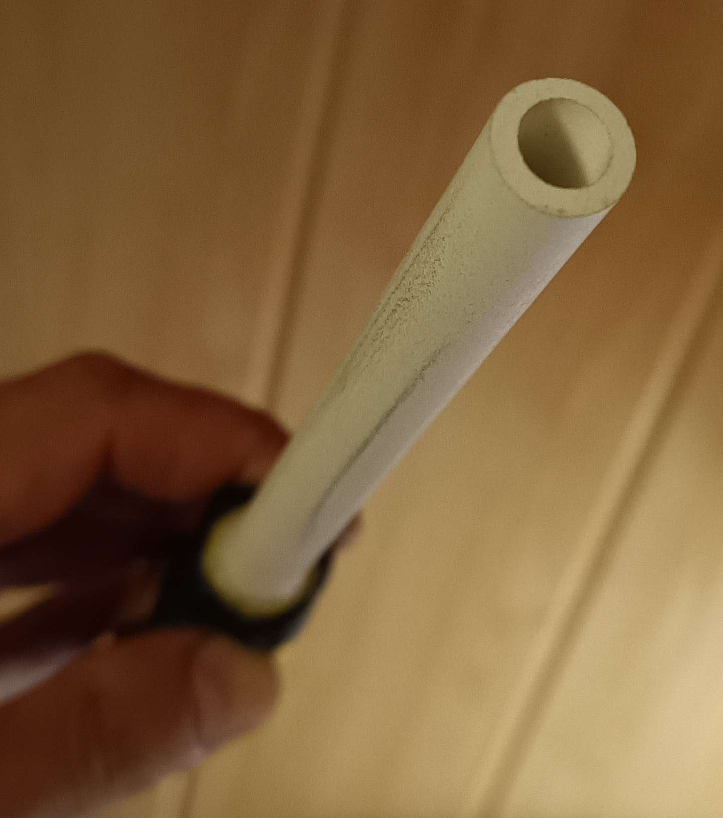 Для правки твёрдых ножей сделал вот такой мусат из покупной керамической трубки и сломанной отвёртки. Трубка на Озоне стоит около 300 руб. 1500 Грит.