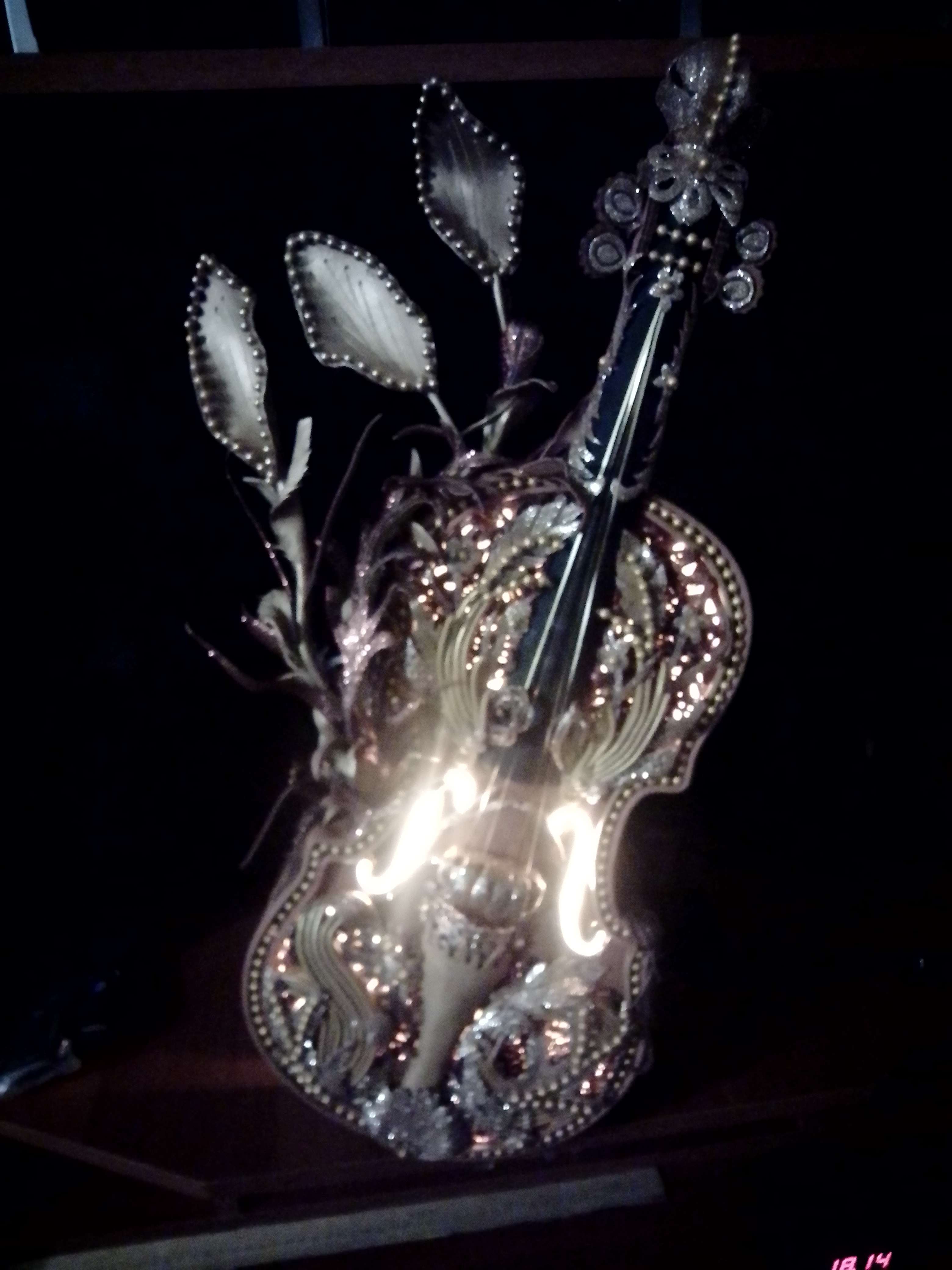Имеются изделия ручной рабоы из фоамирана.Скрипка с подсветкой,вторая с подсветкой и звуком.